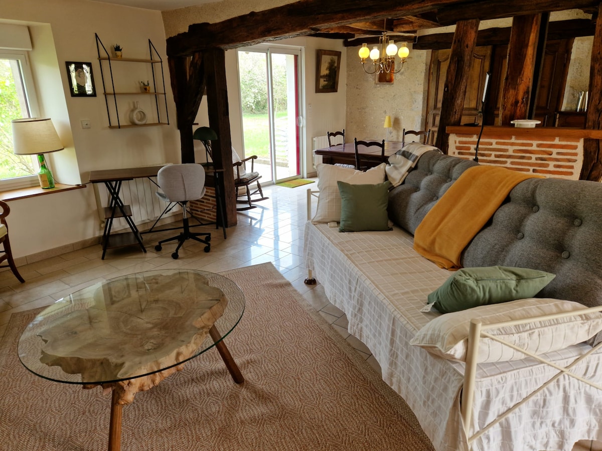 Si busca un lugar a 2 horas al sur de París para relajarse, visitar los castillos del Loira o el zoológico de Beauval, esta pequeña casa de pueblo es para usted. Solo para dos personas, este nido totalmente independiente sin adosado y sin vecinos, le seducirá por su lado acogedor. Esta casa con aire acondicionado ha sido completamente restaurada y especialmente equipada para alquileres vacacionales. Todas las tiendas y restaurantes del pueblo están a poca distancia.