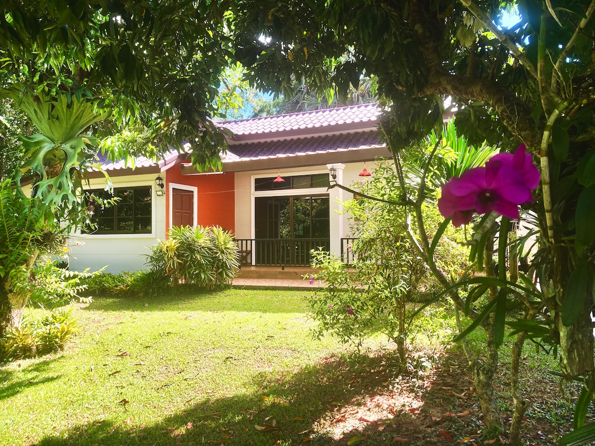 Welcome to House #323 — a peaceful, compact garden escape with fast Wi-Fi and a private sauna. Perfect for a small family, a couple, or close friends, this cozy cottage offers one bedroom, two full bathrooms, a living room with a full kitchenette, a dining area, a long balcony, a front yard, and a relaxing backyard by the end-stream of Mae Korn. Smoking is allowed outside only.