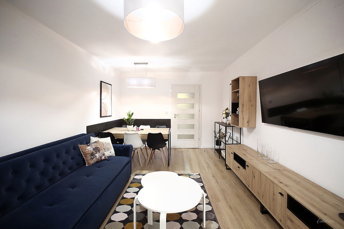 Relájate en este espacio tranquilo y elegante. El apartamento consta de un dormitorio con cama de matrimonio, una sala de estar con sofá cama, smart TV con Netflix incluido, escritorio, zona de comedor, baño con ducha, cocina equipada con vajilla, lavavajillas, lavadora, microondas, horno eléctrico y cafetera. El apartamento está equipado con aire acondicionado y se encuentra en la cuarta planta.