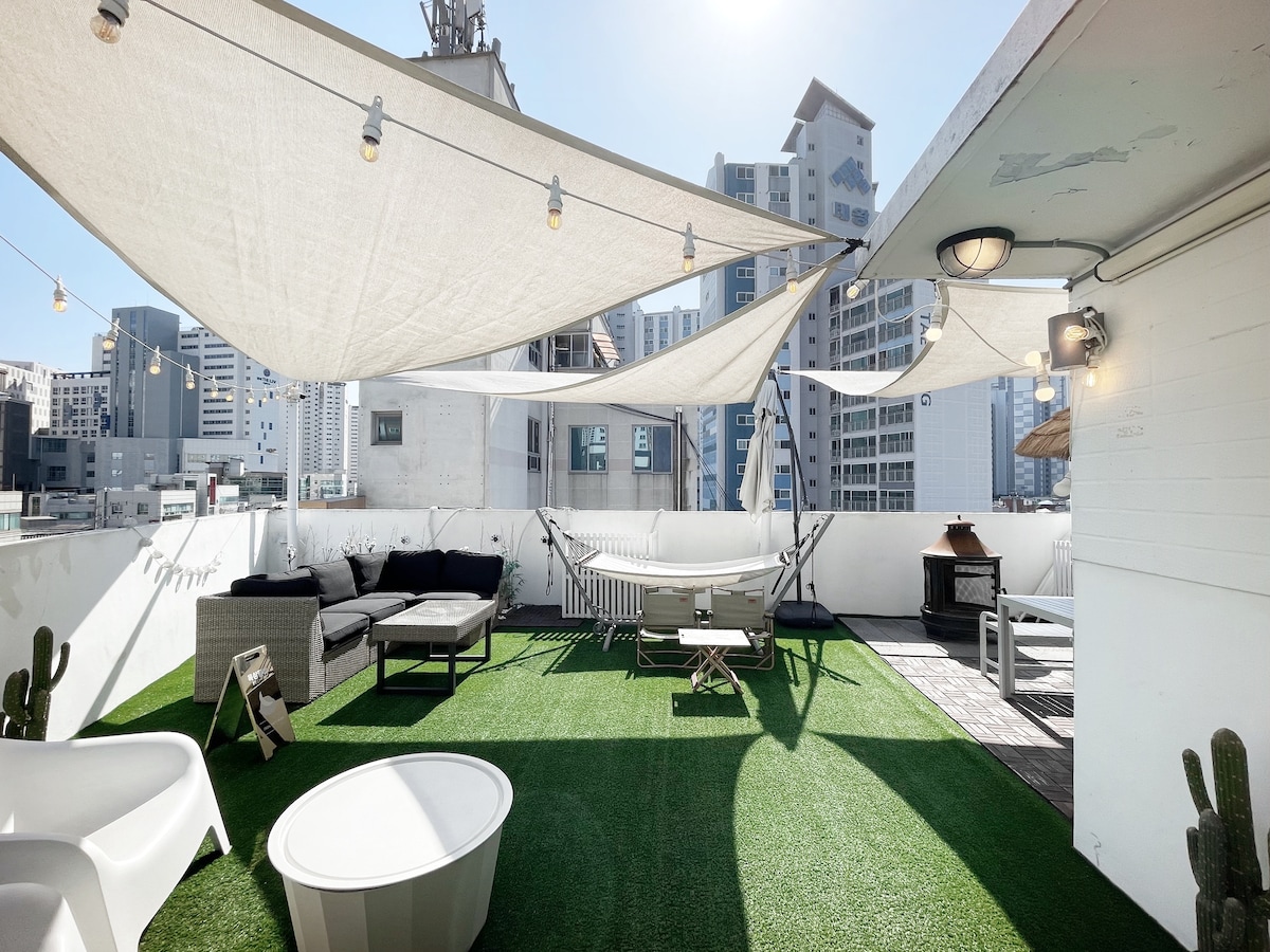 Gather at Home_Rooftop 25 pyeong césped artificial/alojamiento privado/barbacoa/permitido perros