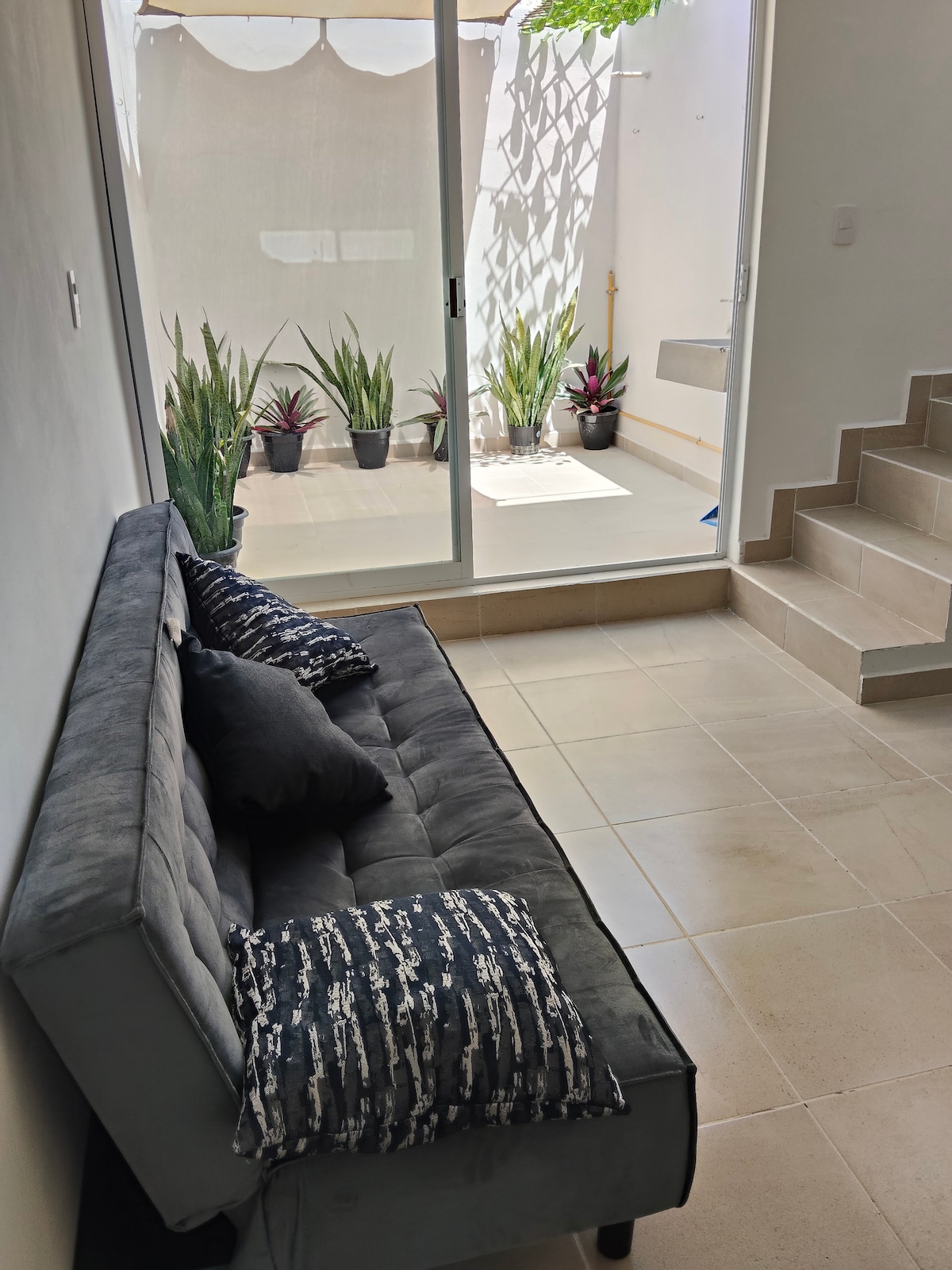 Disfruta de un departamento completamente equipado, a solo unos metros de la central de autobuses. Ubicado en una calle tranquila, iluminada y segura, con transporte público en la esquina y estacionamiento frente al edificio en calle privada cerrada. Este espacio es ideal para descansar y desconectarte, gracias a su limpieza impecable, ventilación natural y amplios ventanales. Además, cuenta con WiFi, televisión y una cocineta totalmente equipada.