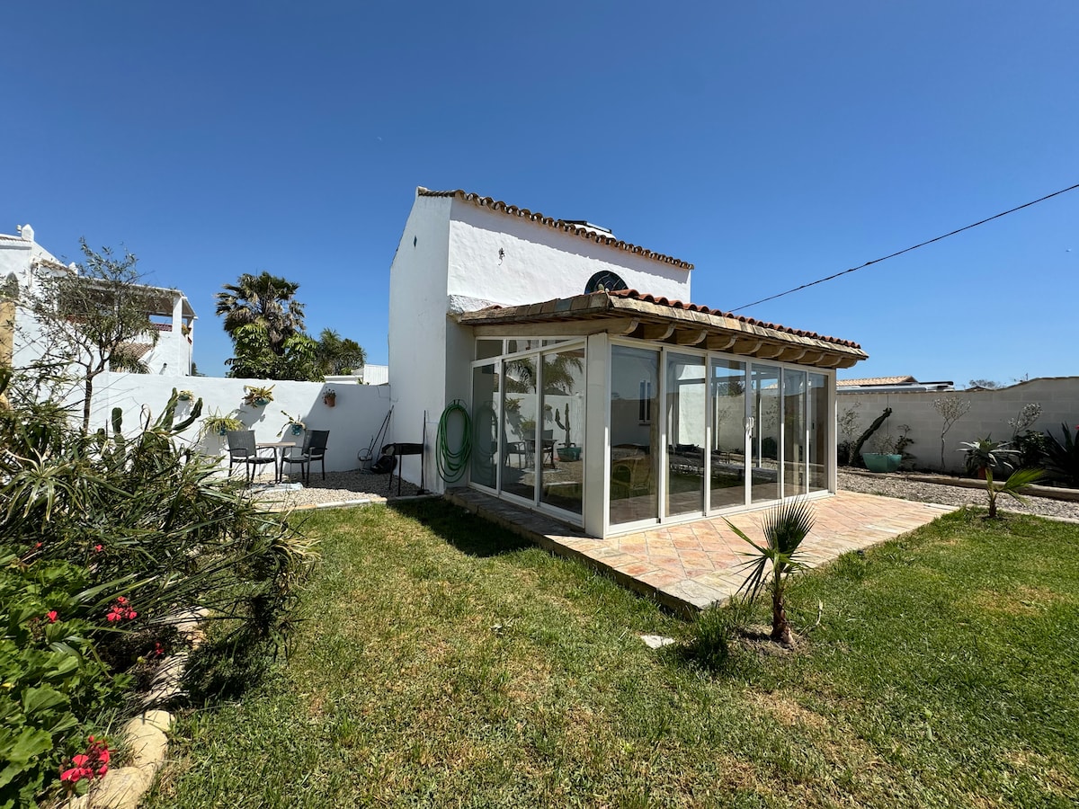 Acogedora casita recién reformada al estilo típico andaluz con mucho carácter a 300m. de playa de Mangueta de una habitación emplazada en un terreno de 400m. de jardín arbolado con cocina totalmente equipada, baño con vistas al cielo, salón y en la planta superior habitación de matrimonio con vistas al mar y al cielo por una ventana superior. La terraza exterior está acristalado con ventanales para disfrutar tanto en invierno como en verano por lo que es acogedora en cualquier época del año
