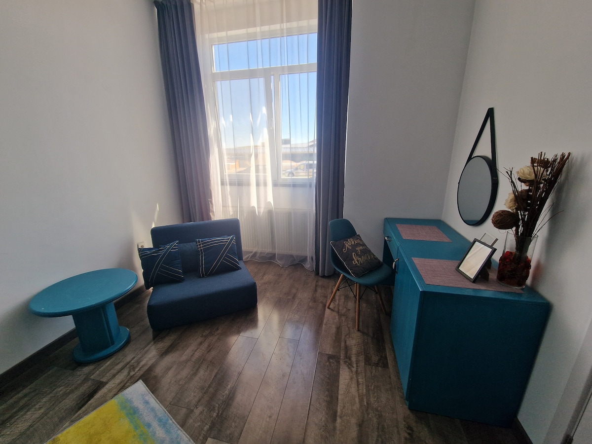 Studio dodat cu aer conditionat ,TV,Wi-Fi gratuit,bucatarie complet utilata in zona linistita,la artera principala,foarte aproape de centrele comerciale. Self Check in ,Check out