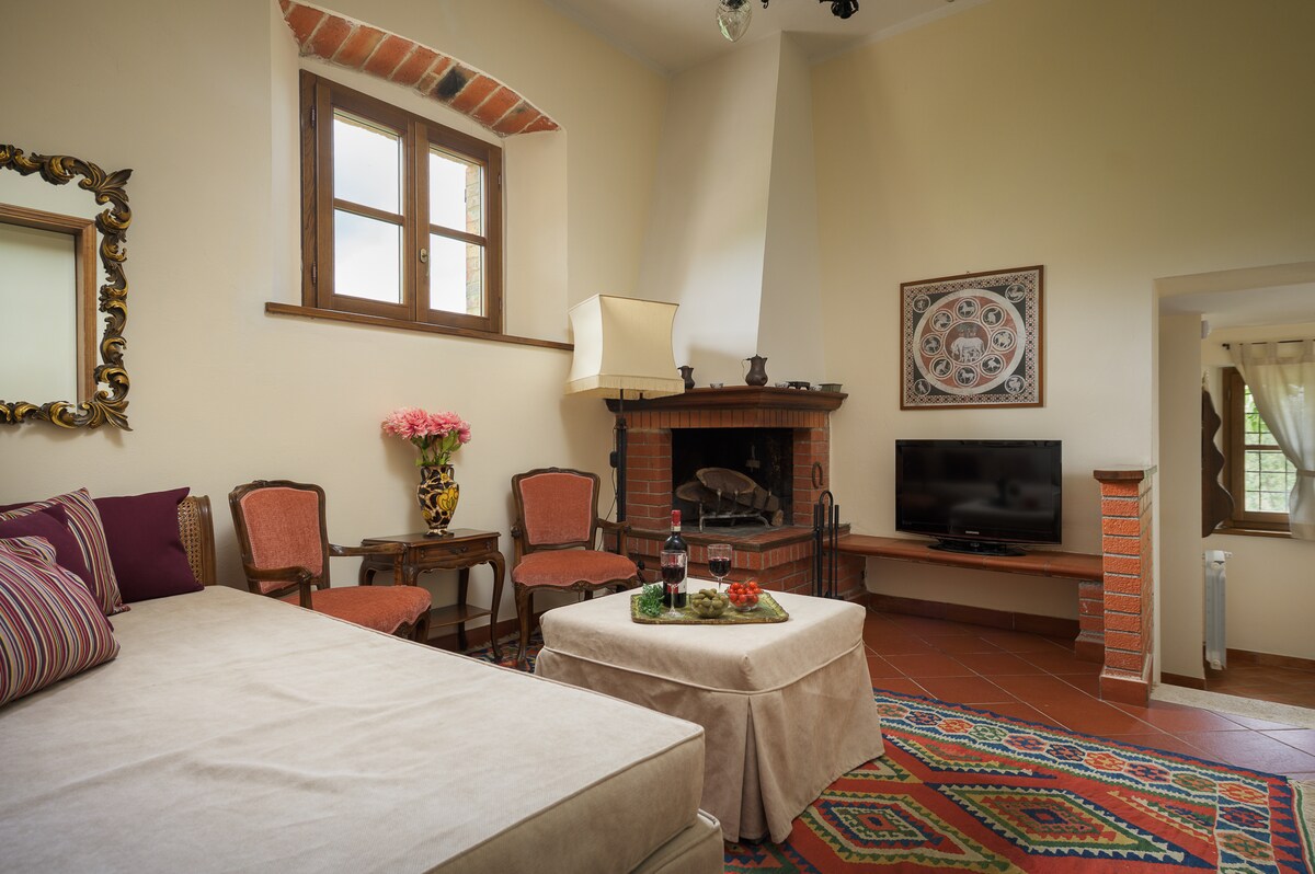 Apartamento que consta de un cómodo dormitorio doble (es posible hacer 2 camas individuales a petición), una cocina equipada, una sala de estar y un baño. TV, barbacoa, (si es necesario, tenemos una lavadora disponible de 9 a. m. a 8 p. m., que está en nuestra lavandería). Se recomienda un coche, ya que estamos en el campo, por lo que puedes ser autosuficiente y visitar la magnífica campiña toscana también. Estacionamiento gratuito y wifi. ¡Espero que la verdadera Toscana te muestre la verdadera Toscana!