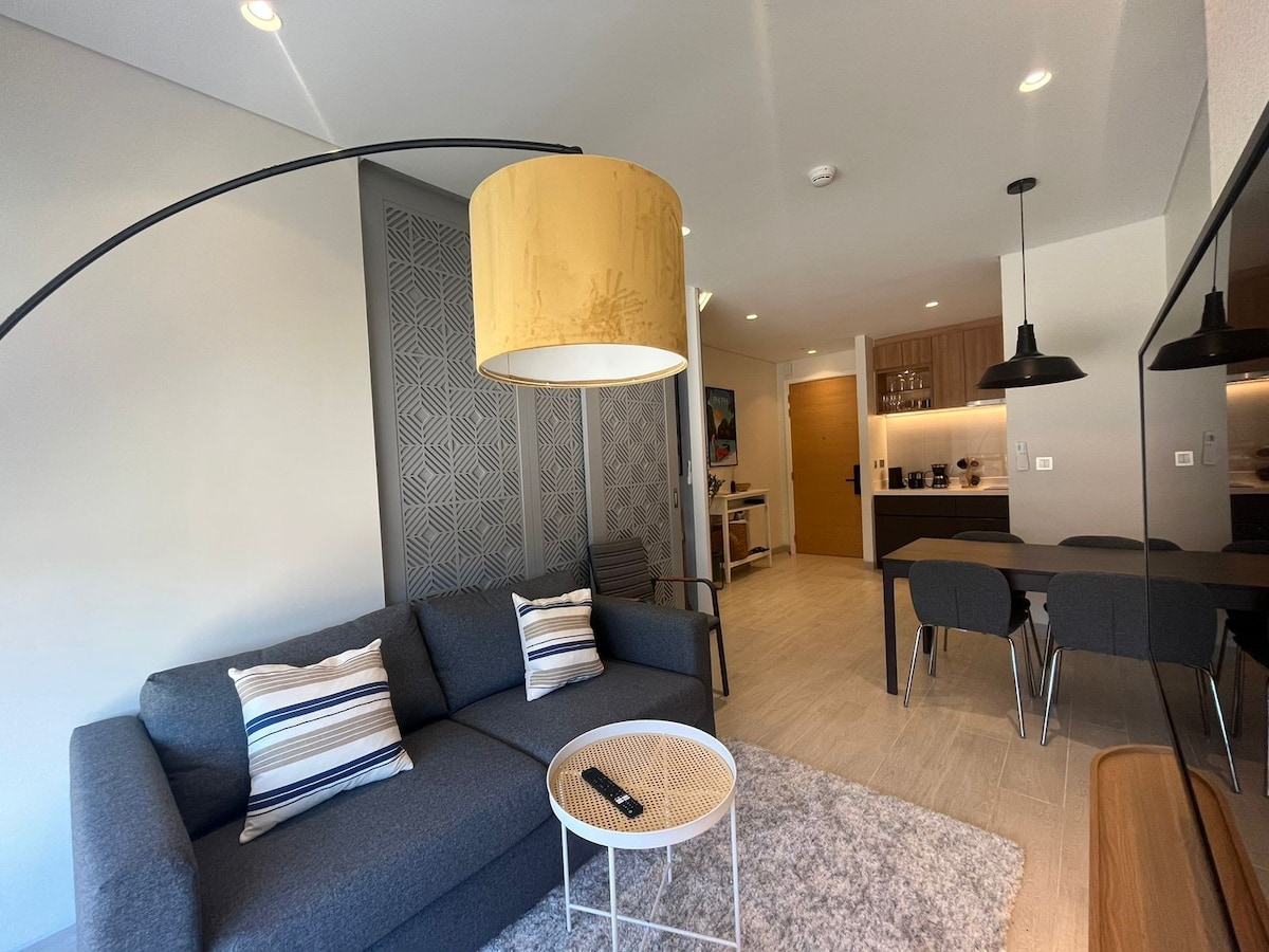Moderno refugio de 1 dormitorio: piscina, gimnasio y estacionamiento gratuito, WiFi