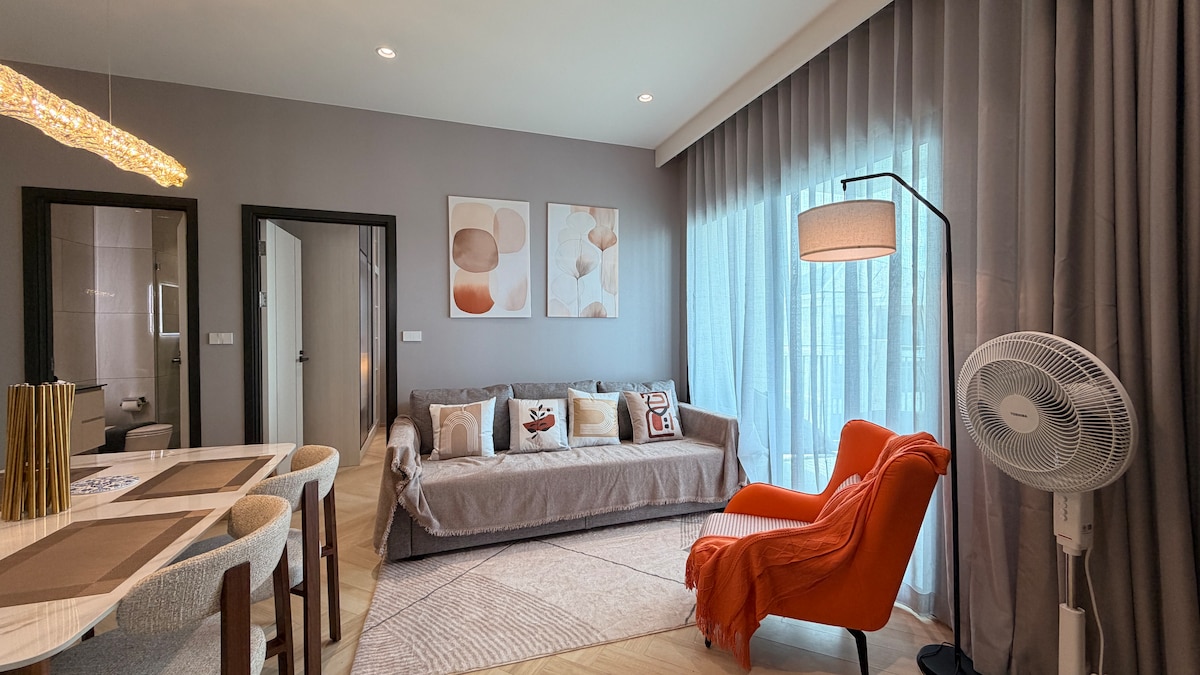 Ubicado en el vibrante corazón de la ciudad, nuestro Tropical Oasis con 2 dormitorios de diseño acogedor y una amplia sala de estar está a pocos pasos del popular mercado de fin de semana, donde puedes sumergirte en la cultura local, saborear la comida callejera y disfrutar de actividades al aire libre, un gran parque público está a solo 1,5 km a pie. El centro comercial de lujo Central Foresta, un centro de entretenimiento, restaurantes y tiendas, está convenientemente ubicado a 1,5 km de nuestro apartamento. A 10 minutos en coche del histórico casco antiguo de Phuket.
