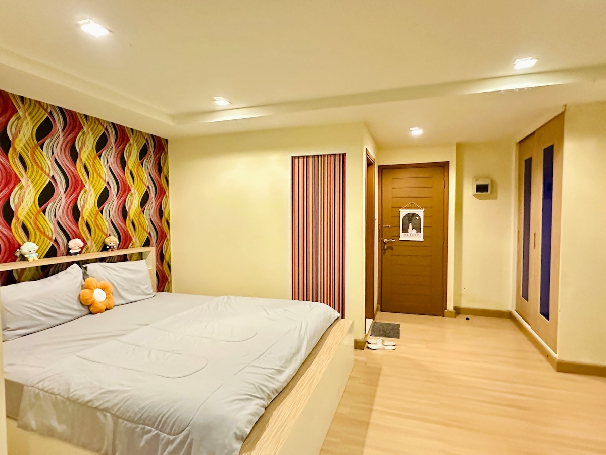 Nuestro alojamiento está cerca de un centro comercial, el mercado nocturno Park-in y el mercado japonés Toshin, dos de los mercados más populares en este momento. También hay muchos bares y restaurantes de moda cerca. 7-11 a la vuelta de la esquina, y también hay una máquina expendedora 7-Eleven en el primer piso. La playa de Bang Saen no está lejos, perfecta para una escapada rápida junto al mar. Utilizamos almohadas y ropa de cama de primera calidad para asegurarnos de que tu estadía sea lo más cómoda posible. Esperamos que te resulte aún más acogedor que otros lugares.