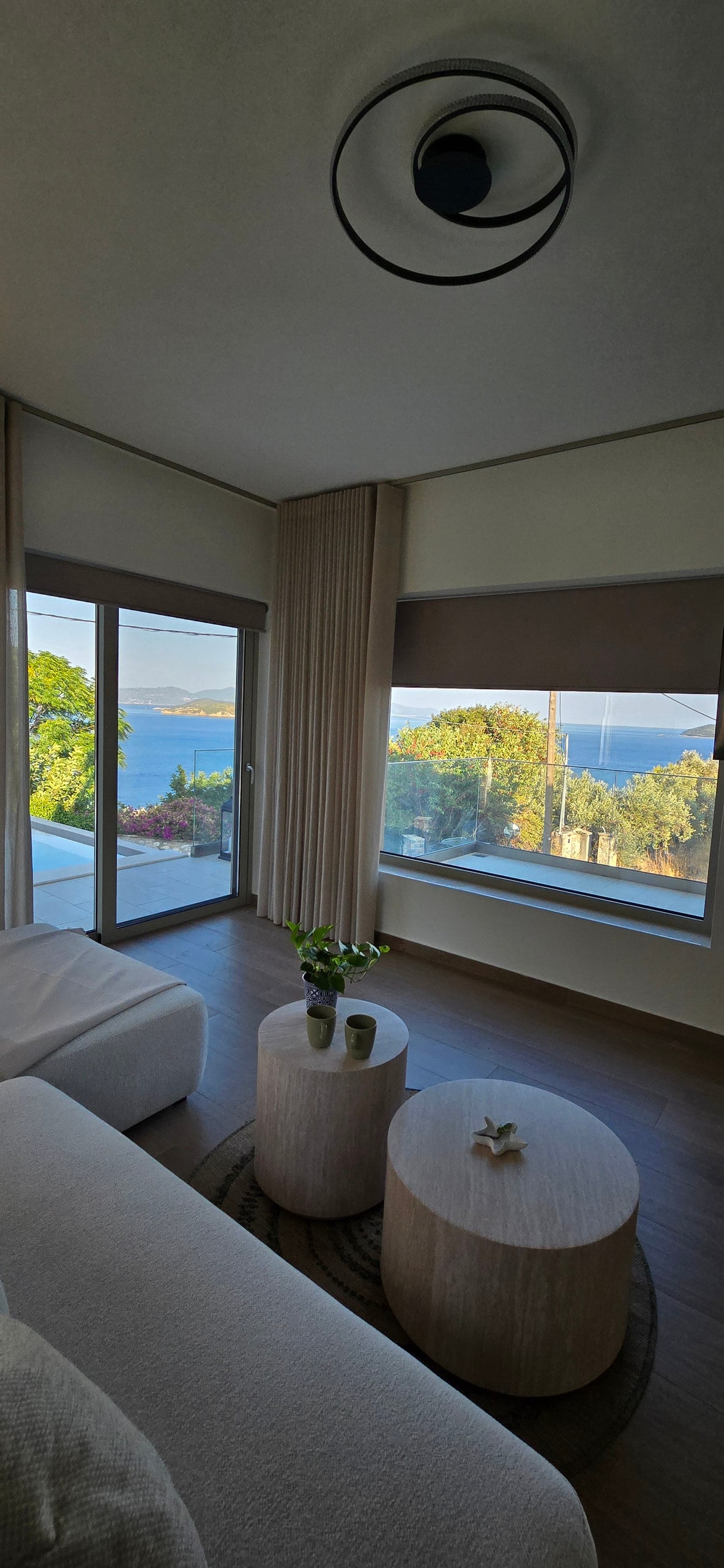 El diseño exclusivo de la casa de Daria se combina perfectamente con sus alrededores y está construida sobre una parcela de tierra que se siente aislada y protegida por la naturaleza. La casa de 85 m2 cuenta con una gran terraza con impresionantes vistas al mar y un patio trasero acogedor y sombreado. Las grandes aberturas de las ventanas dan la sensación de “tocar” el azul eterno del mar desde la mayoría de las áreas de la casa. La casa está construida, amueblada y equipada de forma profesional y hermosa. A solo 3 minutos a pie de la increíble playa Agii Saranta.