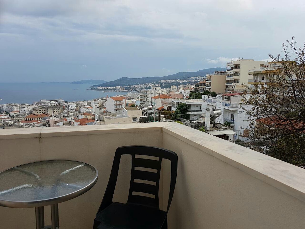 A brand new apartment with a great view of Kavala. Ideal for families, couples and business travellers all year round. Located in a quiet neighbourhood, not far from city center, the apartment offers a relaxing accomodation. I 'll be happy to host you and make you feel like home!