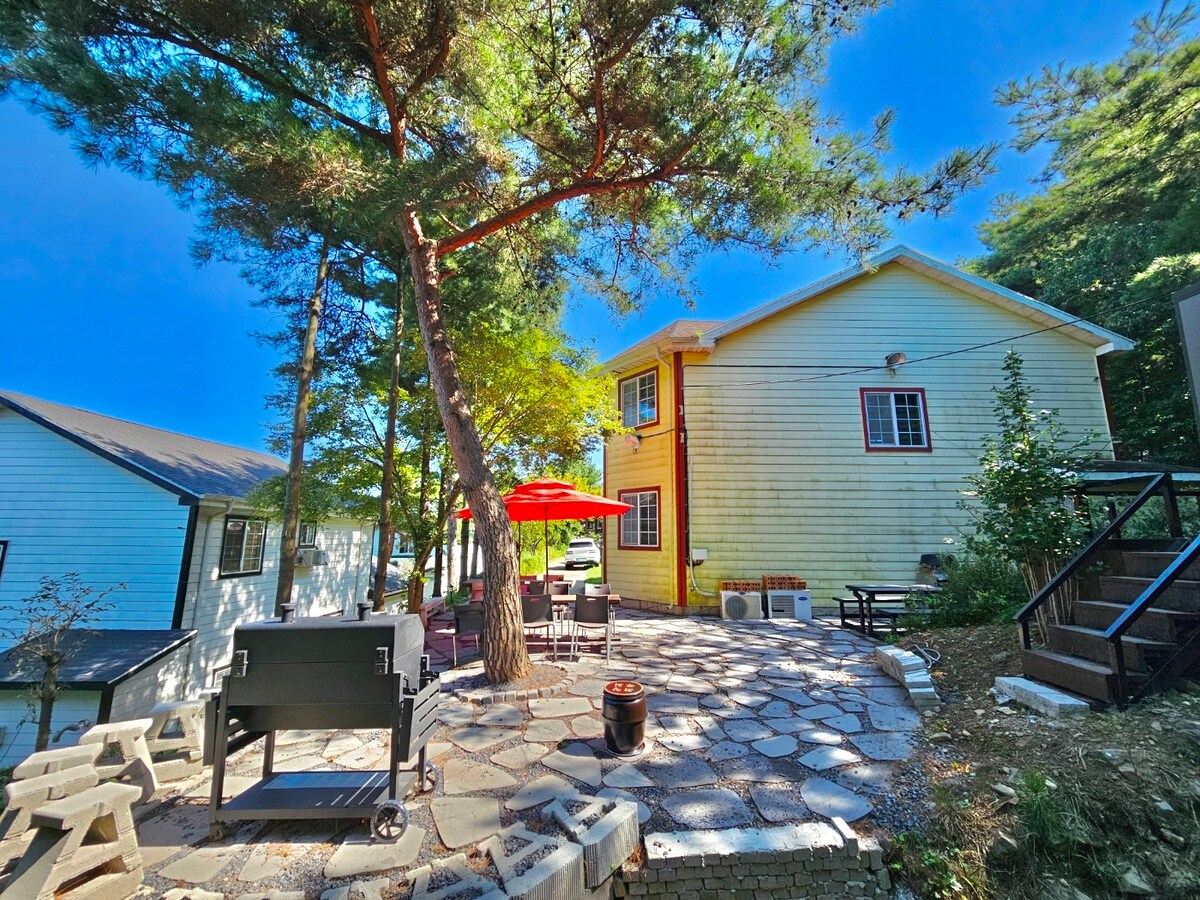 Chunjangdae, aquí. Es un alojamiento privado ubicado a 820 pies de la playa de Chunjangdae. Esta casa es perfecta para aquellos que planean un viaje familiar grande (2~3 familias) o quieren quedarse en silencio. Se encuentra a 5 minutos del puerto de Hongwon en coche, donde se puede disfrutar del sabor del mar, ya 20 minutos del famoso Parque Ecológico Seocheon. Lugar.