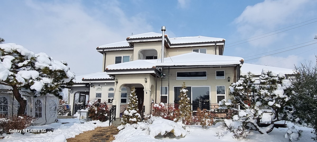 Esta es una villa de lujo con piscina que incluye piscina privada y barbacoa. (Hay un cargo adicional por más de 48 pyeong, hasta 12 personas y 8 personas. Se permiten perros) * Consulta para más de 8 personas * Es un edificio venenoso y hay 3 habitaciones (interior 48 pyeong). El dormitorio principal tiene 1 cama tamaño king + baño. Las dos habitaciones pequeñas constan de una cama individual y una litera, por lo que 3 personas pueden quedarse. Hay un baño y una lavandería en el pasillo, y la lavadora/secadora están incluidas. La sala de estar y la cocina están conectadas entre sí, y la puerta plegable en la sala de estar conduce directamente a la piscina. La cocina incluye todo lo necesario para cocinar, como una olla arrocera, un horno eléctrico y una estufa de inducción. La piscina tiene 1,5 m de profundidad y tiene agua caliente en primavera y otoño (opcional 80.000 KRW). (Solo hay agua caliente de jacuzzi disponible de noviembre a marzo) Puedes tener una barbacoa privada junto a la piscina (opción: 50.000 KRW) Hay un césped de 600 pyeong en el patio delantero, y puedes usarlo libremente. * * Se admiten perros (2 perros pequeños, 1 perro grande, 20.000 wones/40.000 wones)
