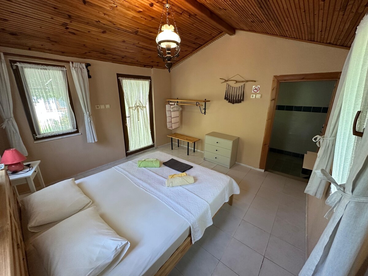 In Çıralı, we have separate rooms within walking distance to the sea for our guests. If you wish, you can stay in a garden with a hammock where your child or pet can also stay. You can relax on the swing or lie down on a sunbed and enjoy the tranquility. In the mornings, you can ride our bikes to the sea and return home to have a breakfast suitable for a vacation with homemade pastries and fresh tea. With air-conditioned rooms and a private bathroom, you will feel at home.