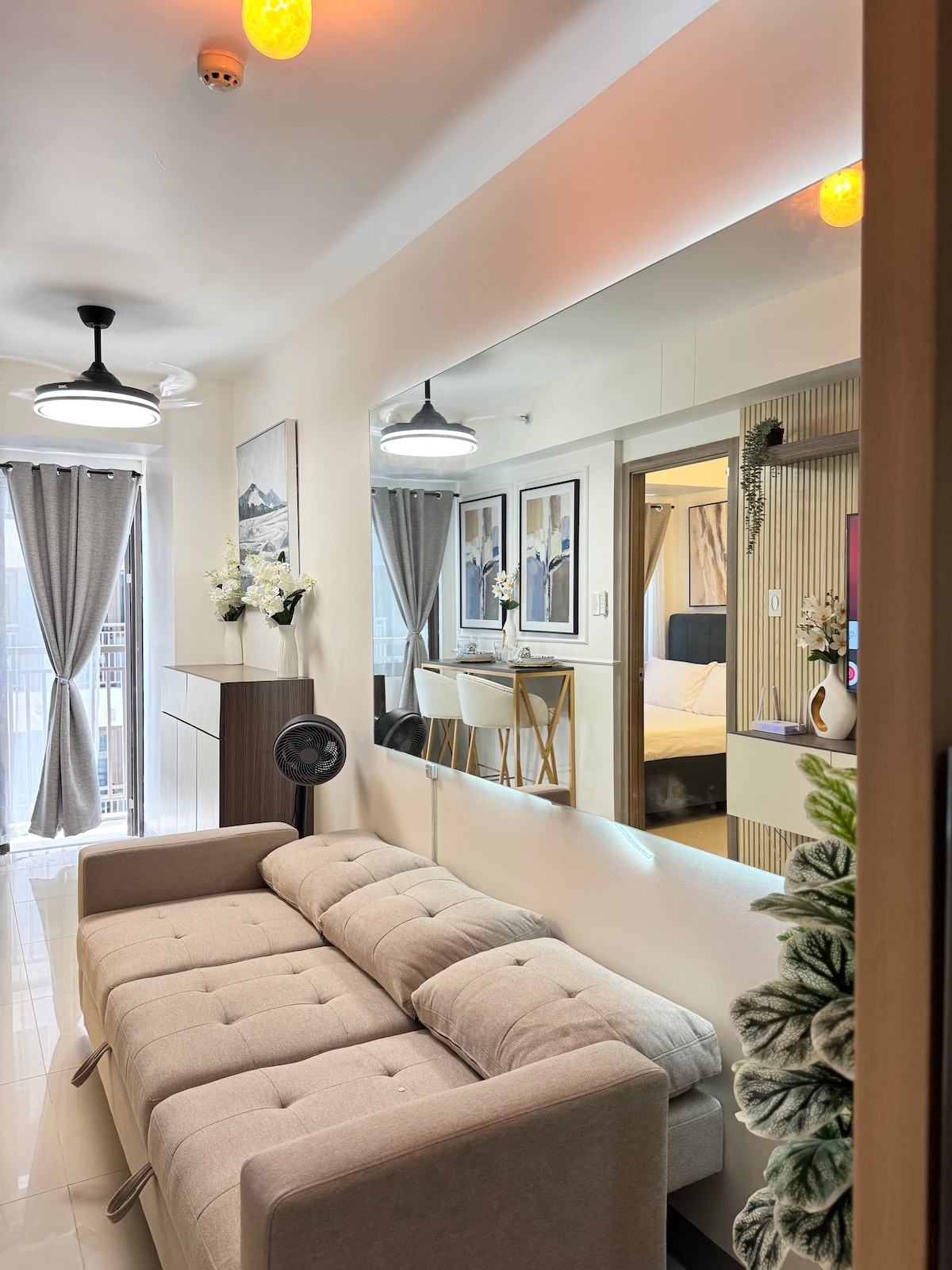 ¡Hola, soy Bella! Disfruta de una experiencia de lujo en este céntrico alojamiento frente a la Terminal 3, Resorts World, puestos de comida, salones y mucho más. Estudio de 38 metros cuadrados con balcón. Completo con elementos básicos, ducha fría y caliente, utensilios de cocina completos y se puede cocinar. • Acceso gratuito a los servicios (gimnasio, piscina, spa). • La velocidad del wifi es de 70-100 mbps, buena para Zoom, etc. • Netflix/HBO-Go/YouTube
