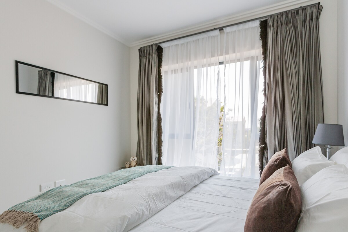 Modern, fully furnished, safe and quiet executive apartment in the heart of Melrose Arch. It's the perfect city getaway, and is suitable for both leisure and business travel. Uncapped Fibre Internet, safe and tranquil surroundings, automatic inverter, an 82” TV (lounge) as well as a 37” TV (bedroom) both smart. Conveniently located within Melrose Arch shopping precinct with access to all stores and restaurants. Back up generator in the building, safe and secure parking with 24 hour security 😊