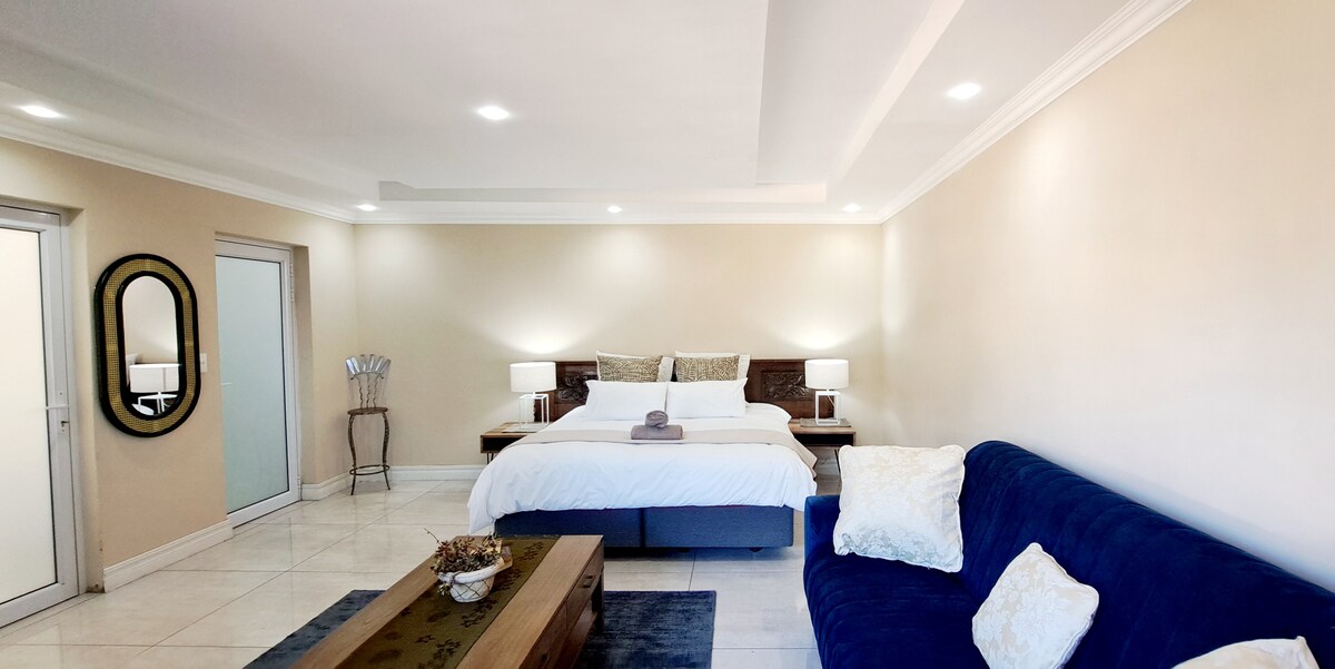 Safe, Stylish & Spacious Near Sandton. Unwind in this beautifully styled, extra-large studio apartment set in the secure Thornhill Estate conveniently close to Sandton and OR Tambo Airport. With a generous open-plan layout with a full kitchen, luxury finishes a spa-like bathroom with dual basins, a walk-in shower and an oversized bathtub. Dedicated workspace and fast Wi-Fi. Access to estate amenities including a shared pool. Perfect for work trips, solo travellers or couples.