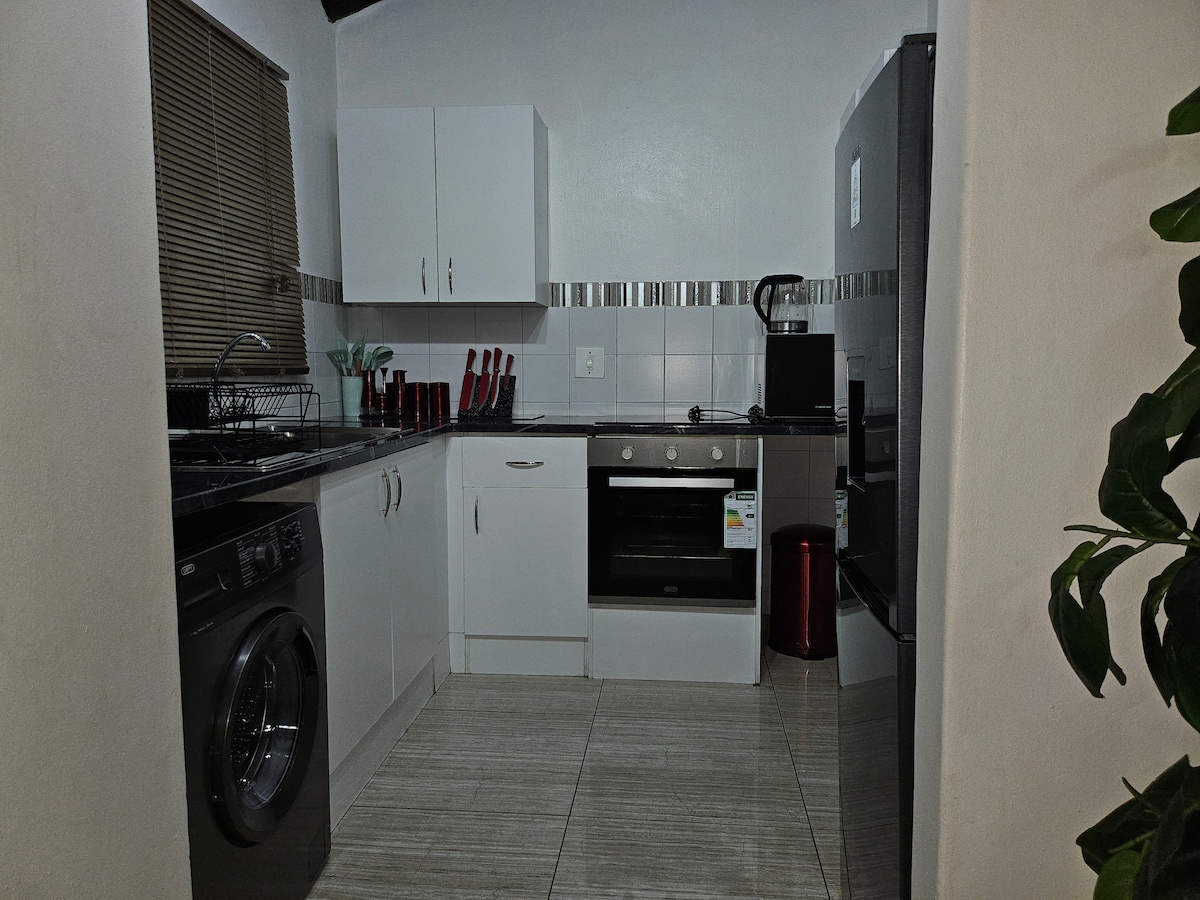Disfruta de una comodidad moderna y elegante en nuestro departamento de 56 m² de un dormitorio y un baño en Bryanston. Diseñado para alojar hasta dos personas, el departamento cuenta con un dormitorio con una cama tamaño queen, un baño con ducha a ras de suelo y un salón y comedor de planta abierta, aire acondicionado y un pequeño balcón. La cocina de diseño totalmente equipada permite un autoservicio sin esfuerzo, TV inteligente, con acceso a Netflix, DSTV, Showmax y Amazon Prime Video listo (inicio de sesión propio).