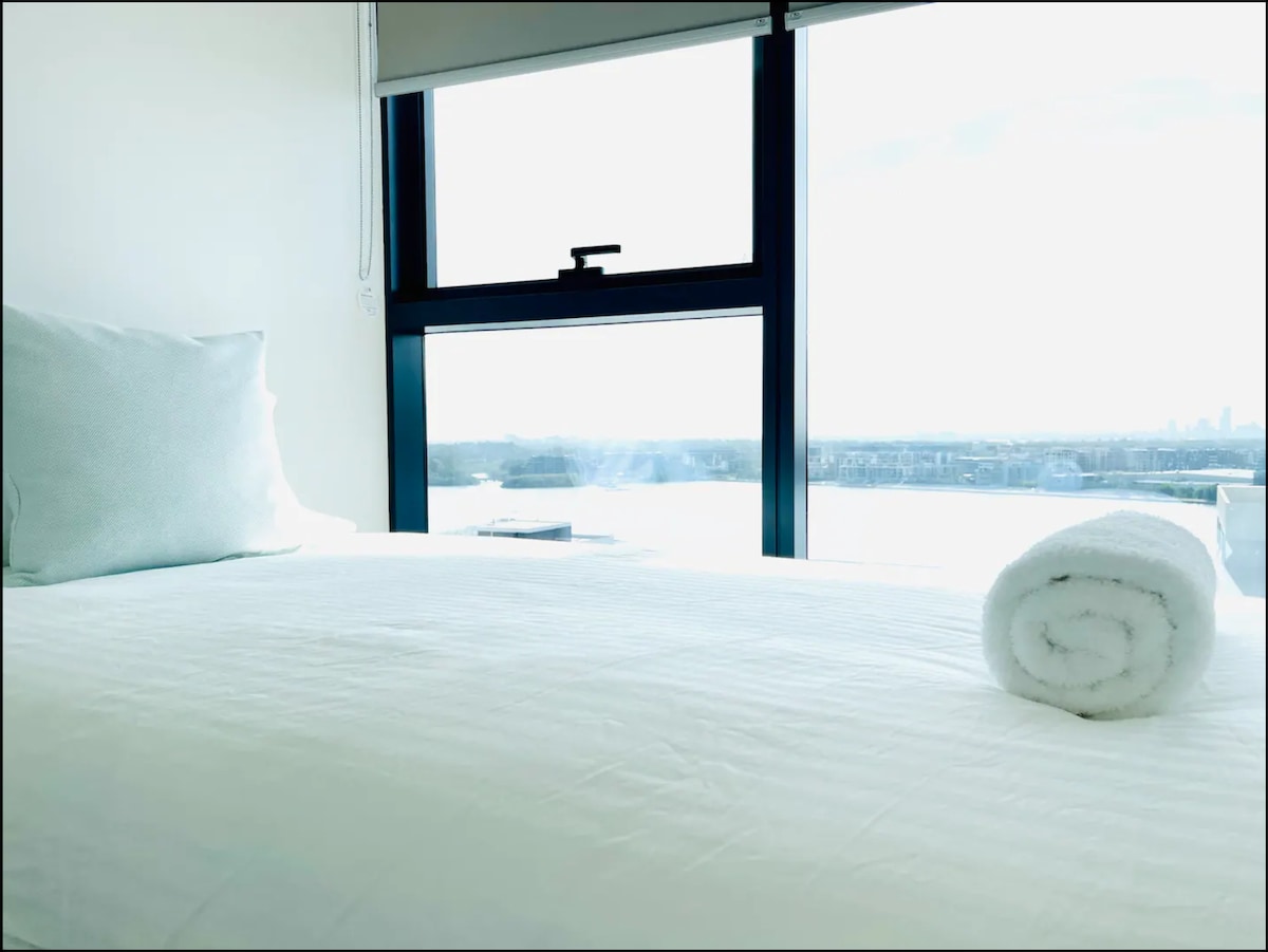 Esta residencia de gran altura se encuentra en la parte superior del centro comercial central de Rhodes, donde puedes acceder a muchos restaurantes, Woolworths y tiendas. Se encuentra junto a la estación de tren de Rhodes, a solo 1 minuto a pie. ¡Está al otro lado de la calle, por lo que es muy tranquilo y disfruta de una vista panorámica impresionante del agua! ¡2 camas tamaño queen y 2 camas individuales para alojar a una familia de 6 personas! ¡El apartamento fue construido en 2024 y viene con todos los muebles nuevos! ¡Estrictamente prohibido celebrar fiestas y fumar!
