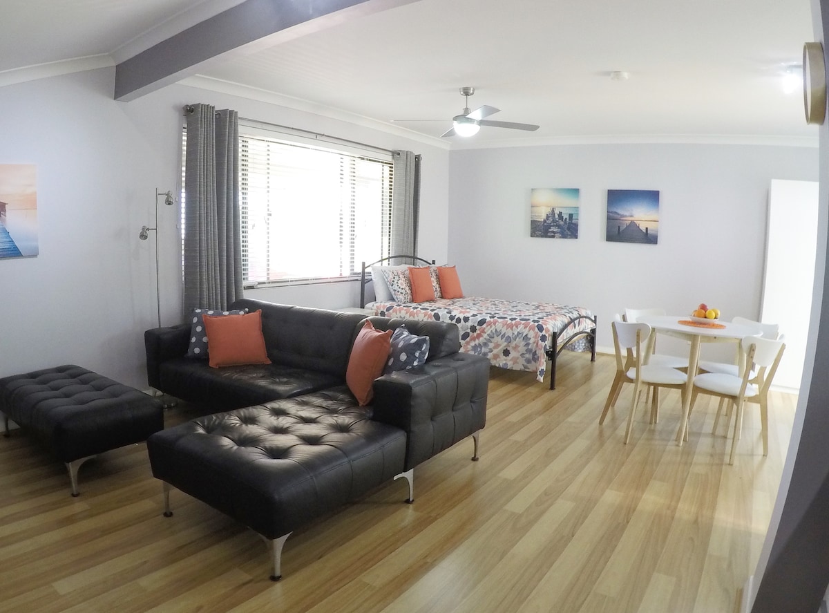 Este es un espacio dedicado, limpio y encantador para Airbnb, un ala privada de nuestra casa con entrada independiente. Utensilios básicos de cocina, microondas, tostadora, hervidor de agua y placa portátil, sin horno. Batidora de mano/licuadora. Nevera de tamaño completo. Cualquier otra cosa que necesites, ¡envíame un mensaje! Wembley está idealmente ubicado a 10 minutos de la ciudad y a 10 minutos de Floreat y City Beach, cafés junto a la playa, pubs y restaurantes. El transporte público es de fácil acceso. Un fabuloso mercado gourmet y una tienda de vinos están muy cerca. Bienvenido :)