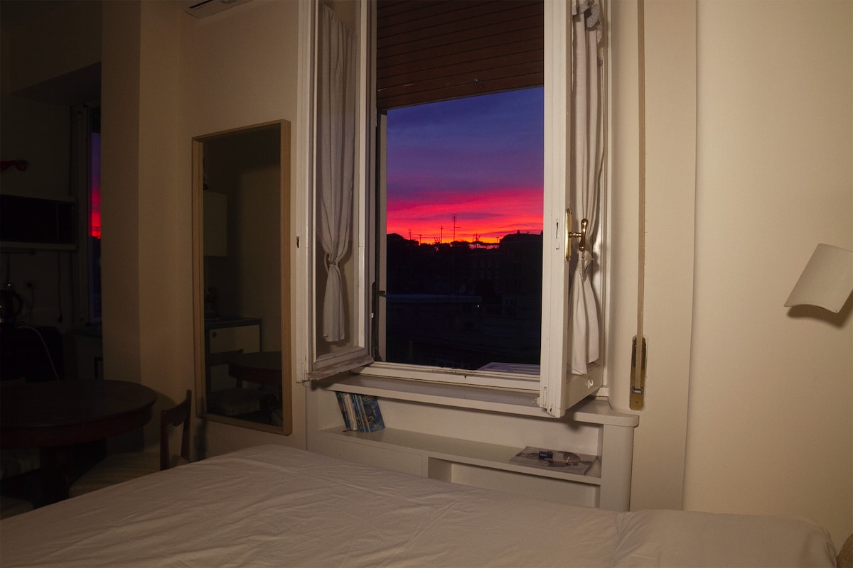 Colorido apartamento recién renovado con un ambiente artístico vibrante, a solo 2 minutos caminando de la estación Termini y a 5 minutos de la estación de metro Repubblica. Encontrarás todo lo que necesitas durante tu estancia: una cocina totalmente equipada con nevera, microondas, lavadora y lavavajillas; un baño acogedor con una gran cabina de ducha; un dormitorio grande con un colchón tamaño king; un sofá cama que puede alojar a 1 huésped adicional; aire acondicionado, TV y un gramófono de trabajo.