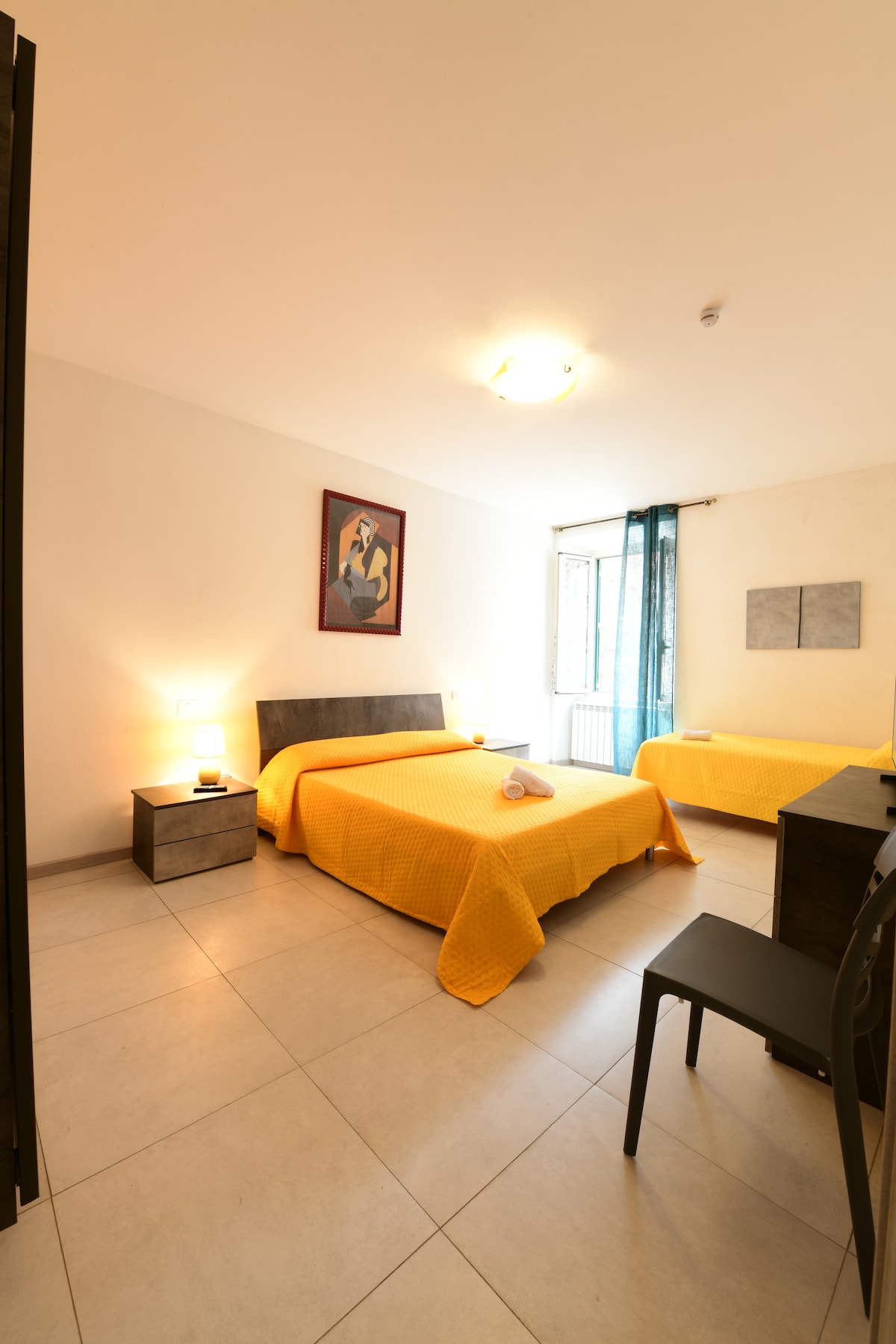 Intero appartamento a 300 mt dal porto ed a 500 mt dalla stazione ferroviaria, sito al terzo piano con ascensore. Composto da ingresso, ampia camera con letto matrimoniale oltre a un letto singolo e tv, soggiorno con divano letto, smart tv e balcone con bella vista sulla piazzetta centrale, cucina con piano ad induzione, forno a microonde, macchina per caffè, bollitore e frigorifero, bagno con doccia. Ricordiamo ai gentili ospiti che in tutte le città italiane va pagata la tassa di soggiorno.