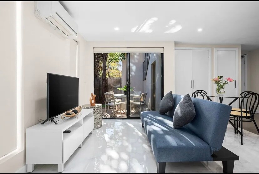 Un exquisito apartamento ubicado en Clayton, cerca de la Universidad de Monash, cuenta con salas de estar y comedores de planta abierta. - Entrada segura. - 2 dormitorios. - Cómodas camas tamaño queen de 5 estrellas y sábanas. • 2 baños. • Balcón privado. • Aire acondicionado en la sala de estar y el dormitorio principal. • 1 espacio de estacionamiento gratuito en el sótano seguro. - Wifi gratuito. • Cocina totalmente equipada. • Netflix, Disney+ y Amazon Prime disponibles en televisor inteligente de 43pulgadas. • Barrio tranquilo