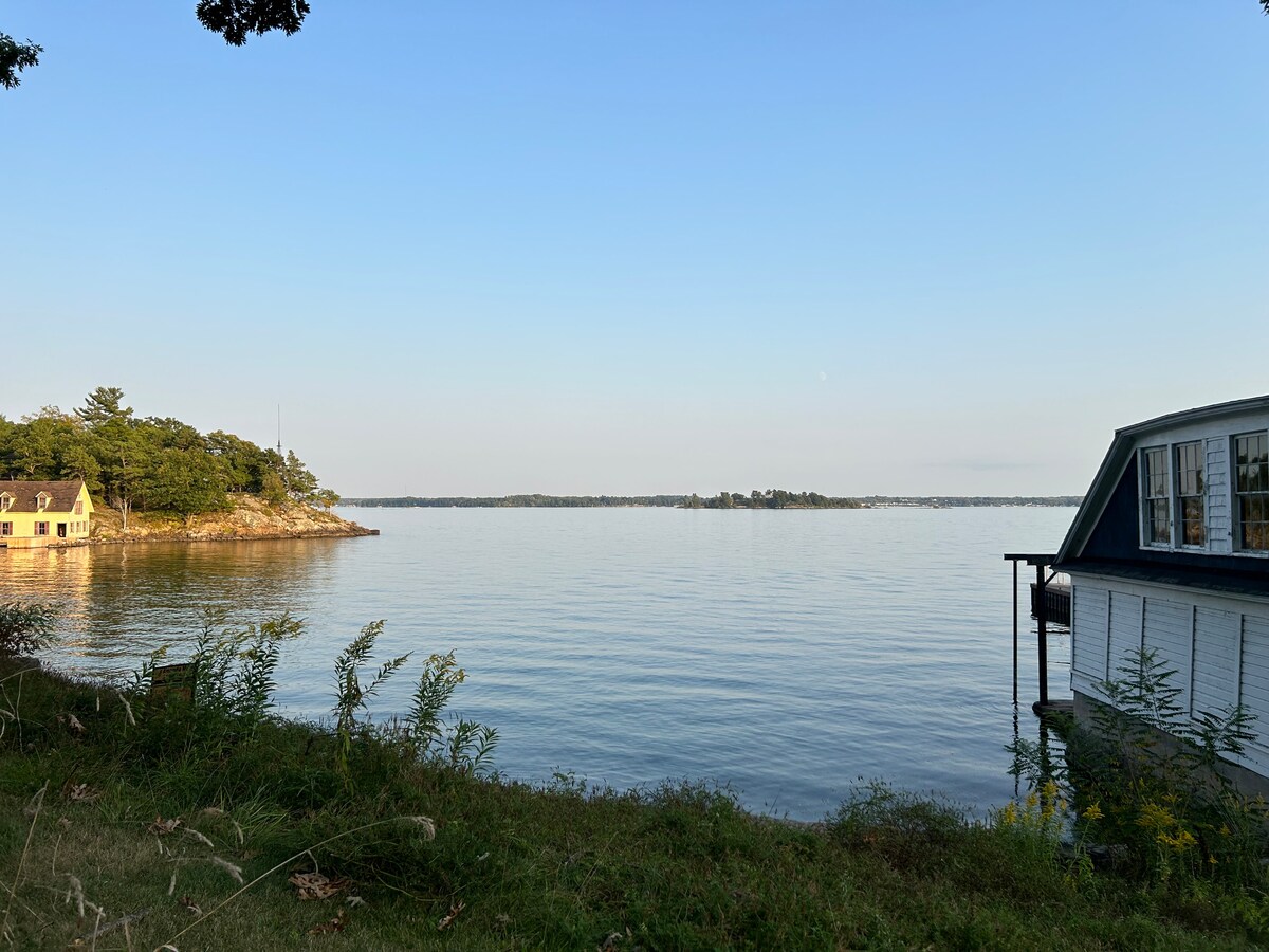 Casa de campo frente al mar situada en el corazón de las 1000 islas entre Kingston y Gananoque. ¡Ahora con aire acondicionado! Casa de campo de concepto abierto. Ubicación privilegiada de pesca, navegación y navegación. 2 kayaks y una canoa para los huéspedes. Totalmente amueblado con ropa de cama, mantas, almohadas y toallas, todo incluido. Limpieza minuciosa entre visitas de los huéspedes.