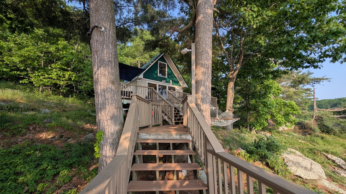 Disfruta de tu privacidad en esta cabaña frente al mar en la histórica Smugglers Cove en el St. Lawrence en el corazón de las 1000 Islas. Tendrás uso de toda la cabaña con fantásticas vistas al río desde tu propio patio. Convenientemente ubicado junto a la carretera 1000 Islands Parkway, una de las rutas panorámicas más bellas de Norteamérica, los huéspedes pueden disfrutar de paseos, caminatas y ciclismo por el paseo marítimo pavimentado y pintoresco de 37 km. Puedes llegar en barco o en coche; entrada privada a tu cabaña.