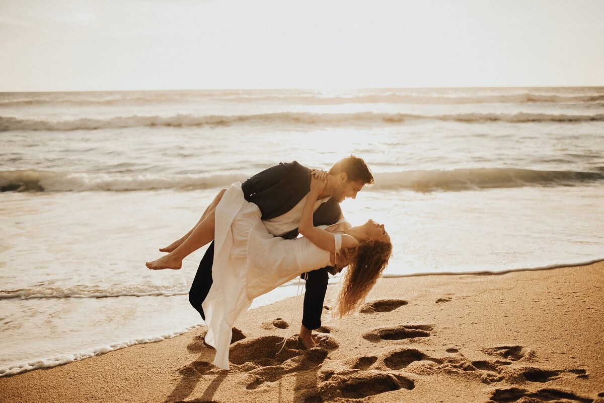 Sesión de fotos en la playa a la hora dorada