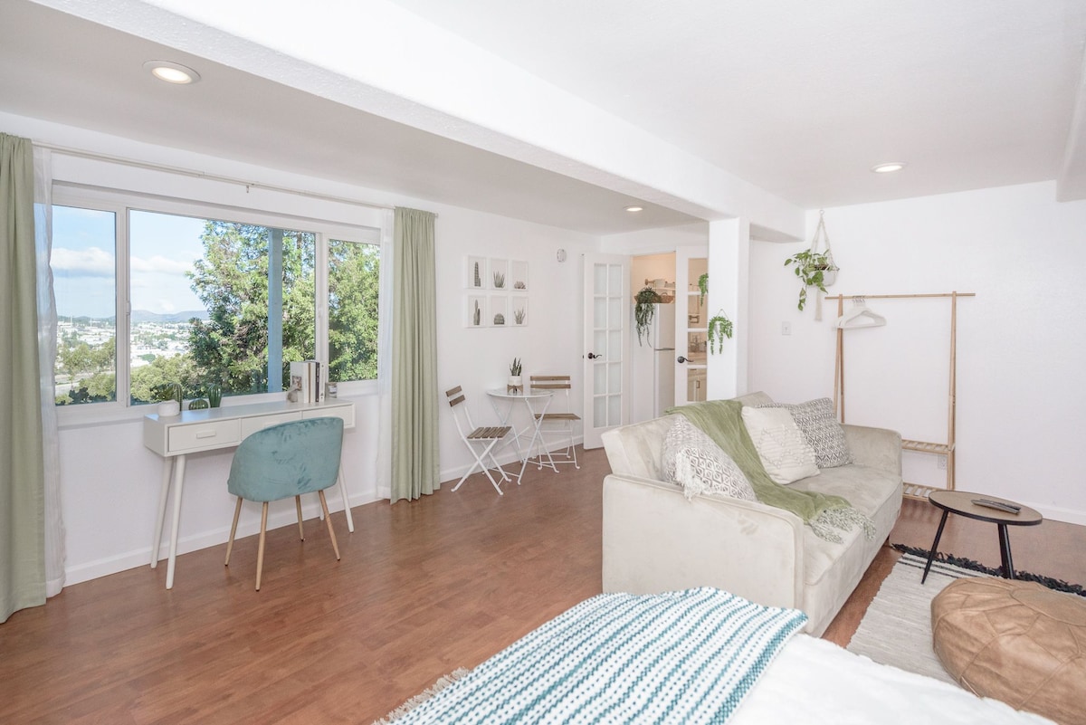 Acogedor estudio con jardín en la cima de una colina con vistas a la ciudad y jacuzzi