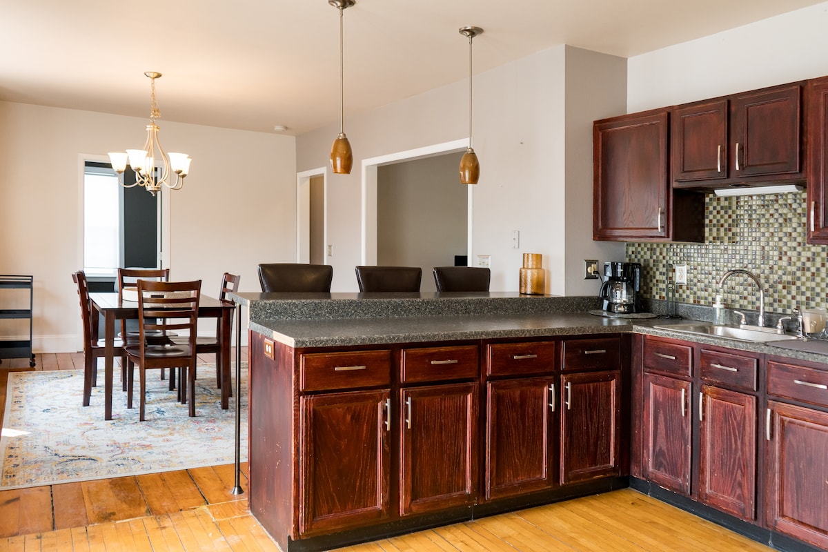 Nadie debería tener que dejar a su bebé peludo mientras está de vacaciones. Esta es exactamente la razón por la que creamos este cómodo hogar pensando en tu familia y cachorro. Estarás tranquilo sabiendo que tu perro se divertirá tanto como tú. Los toques modernos se complementan con la decoración acogedora y acogedora que se encuentra en todas partes. La cafetería es una de las favoritas de cualquier persona madrugadora, y el bar de vinos «llévate un vino, deja un vino» ofrece emoción nocturna. El enorme patio cuenta con un pozo para hacer fogatas, parrilla de gas y cornhole.