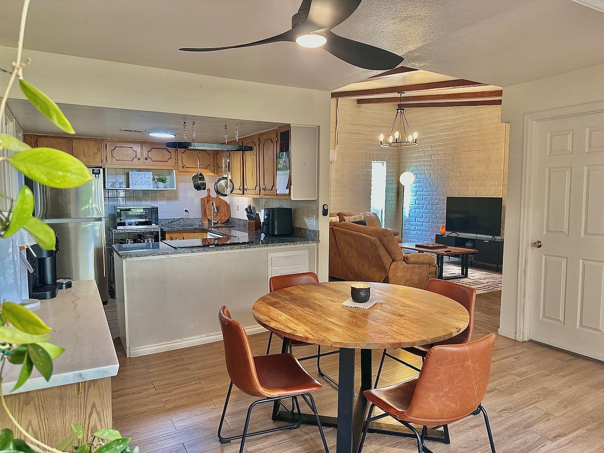 Retiro de lujo moderno con jacuzzi • Enorme patio cubierto • Cocina de diseño • Chimenea • Oasis de patio privado ⭐ Perfecto para familias • viajeros de negocios • escapadas de fin de semana • estadías de larga duración Bienvenido a tu elegante escapada a El Paso, un alojamiento moderno bellamente renovado diseñado para la comodidad, la relajación y estancias inolvidables. Desde la cocina del chef de alta gama hasta el patio trasero de estilo resort con jacuzzi, cada detalle de esta propiedad está diseñado para brindar a los huéspedes una experiencia de lujo.