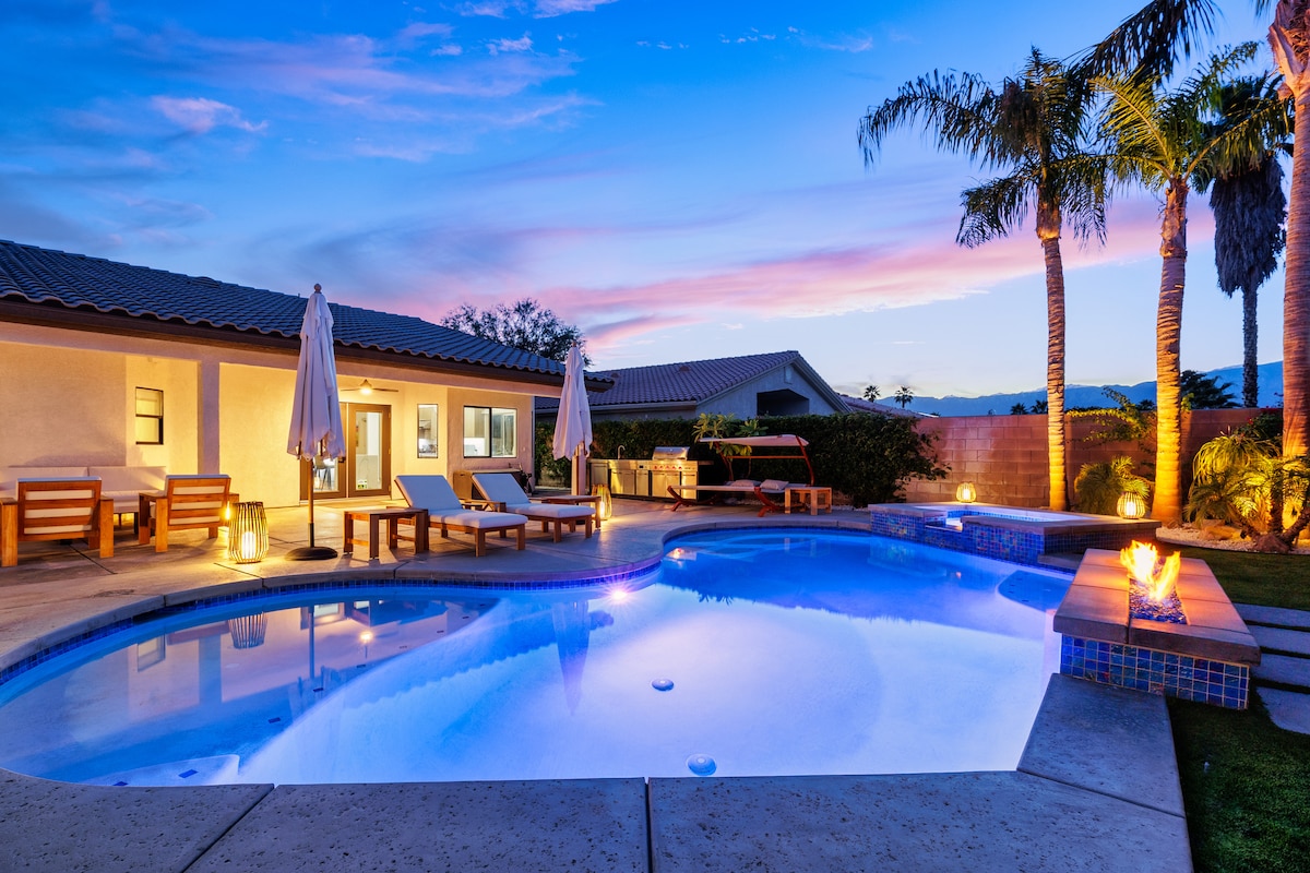 Nestled against the backdrop of the beautiful San Jacinto mountains, our retreat offers a luxury getaway surrounded by palm trees and clear blue skies in the heart of the Coachella Valley. Conveniently located near Palm Springs, Acrisure Arena, Joshua Tree, Indian Wells Tennis Garden, PGA West Stadium Course, El Paseo Shopping District, Agua Caliente Casino, and Empire Polo Club. This sanctuary provides quick and central access to the vast desert wonders and surrounding city experiences.