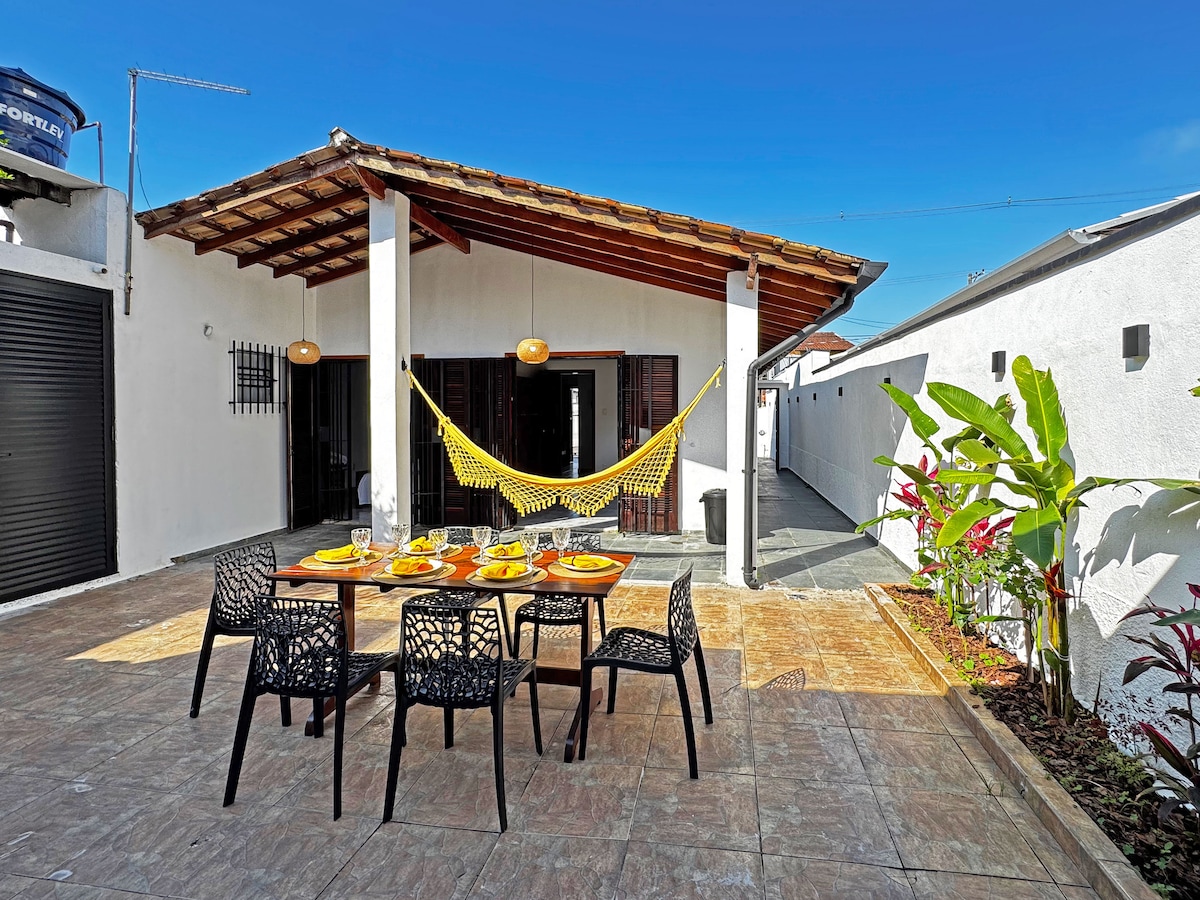 Excelente para familias. Situado en la playa de Massaguaçu. Recién decorado, 2 suites completas en el piso superior con aire acondicionado, balcón en una de las habitaciones con vista al mar, baño en la planta baja, cocina completa, barbacoa privada, plaza para 1 coche privado, a 100 metros de la playa, tenemos 4 sillas y sombrilla para disfrutar. Smart TV, wifi en toda la casa. Máquina nespresso, es necesario traer cápsulas. Excelente ubicación, mercados, farmacias, restaurantes y centro de salud cercanos.