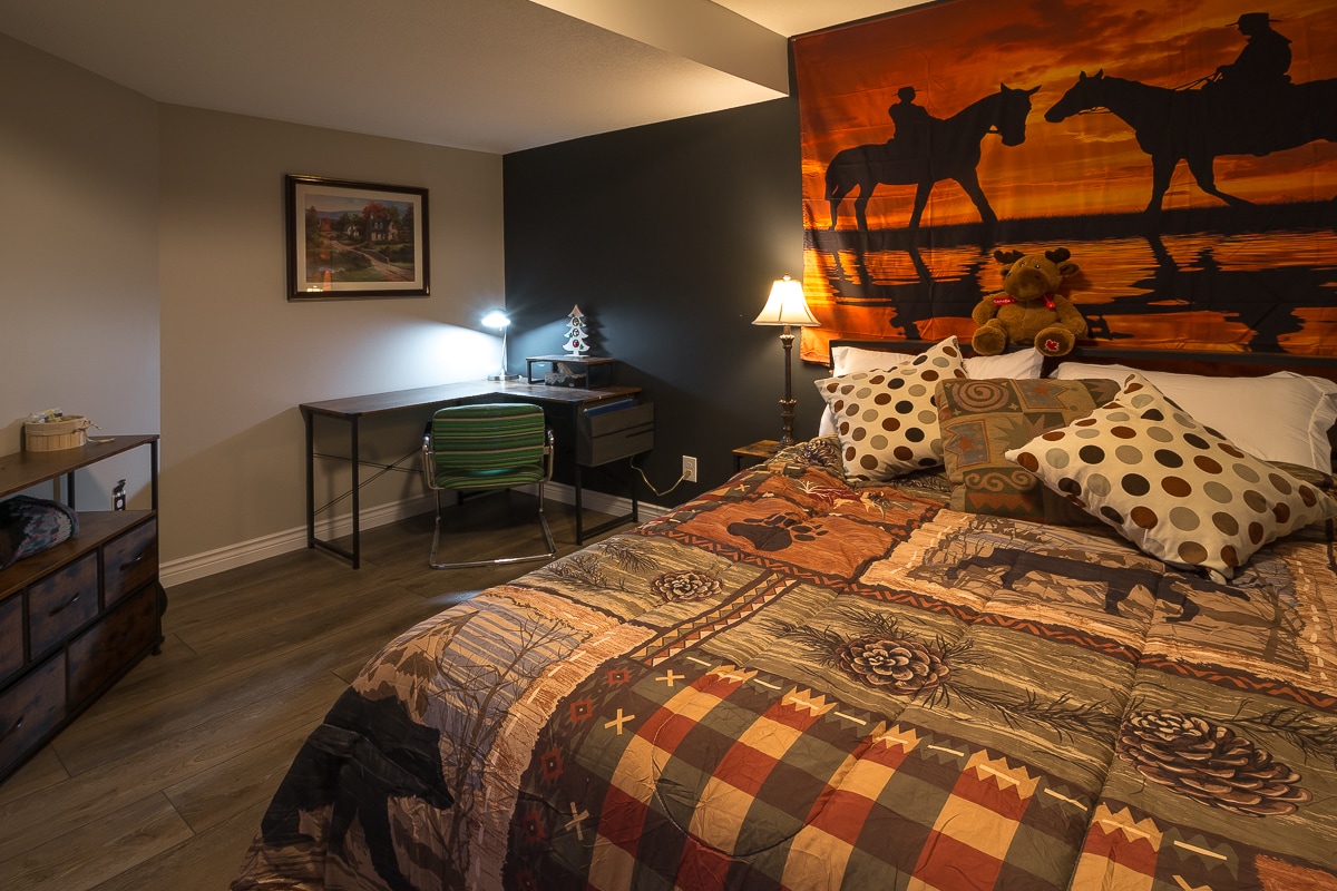 Suite ejecutiva en el sótano con impresionantes vistas a la montaña que dan al campo de golf Gleneagles en la pintoresca y vibrante Cochrane. Entrada privada, totalmente independiente con estacionamiento gratuito. Esta suite legal, insonorizada y a prueba de fuego de 750 pies cuadrados tiene su propio horno y termostato dedicados. Lavandería privada, cocina de planta abierta, dormitorio con cama tamaño queen y baño privado, TV por cable, wifi. Barbacoa de gas natural en un patio privado desde donde podrás relajarte y contemplar la puesta de sol sobre las montañas.
