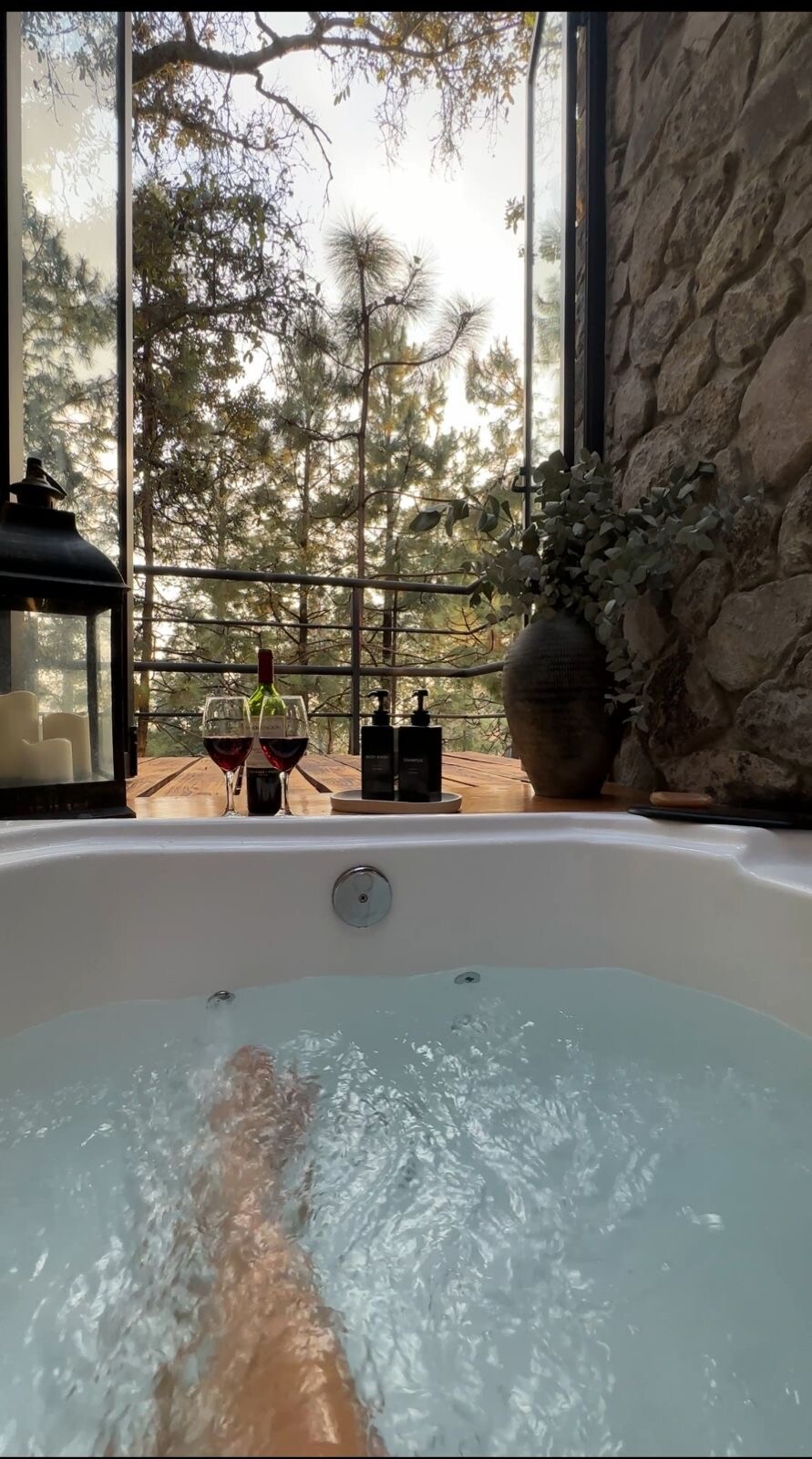 Es un espacio acogedor creado para pasar tiempo en pareja y desconectar del estrés de la ciudad. El jacuzzi se encuentra al aire libre, se calienta con bomba de calor y alcanza una temperatura de 37 grados. Somos PET frienldy (costo de $150 por mascota)