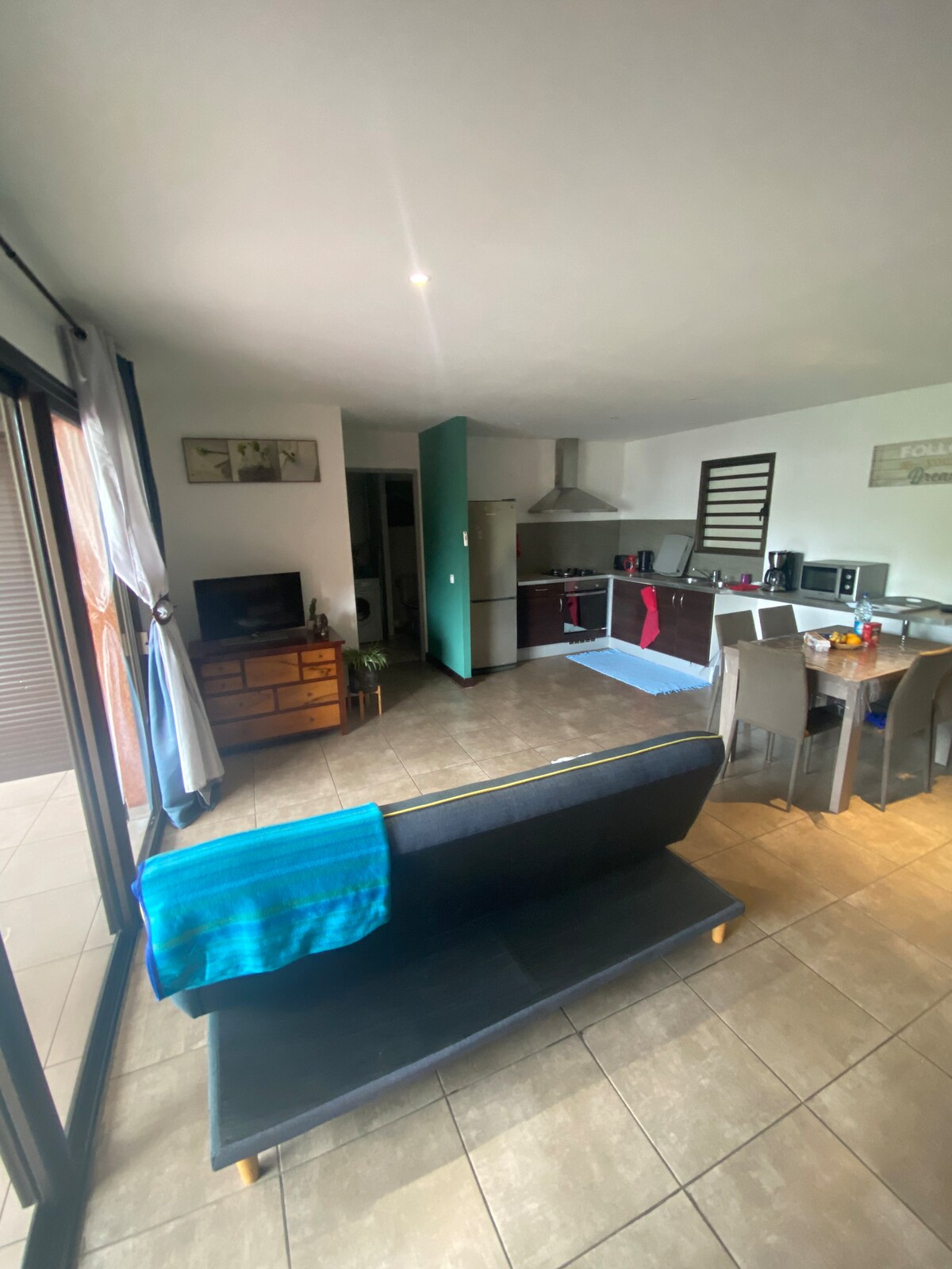 Joli et grand F2 (53m2) tout équipé (VENTILATEURS dans pièces principales) pour 2 personnes, en rez de jardin d'une villa avec 2 gentils chiens dans quartier calme (PK7) à 15 minutes du centre ville en voiture. Centres commerciaux proches ainsi que de nombreux commerces de proximité, à 5 minutes du Médipôle. Un petit espace devant le F2 protégé par un store extérieur et attenant au jardin permet de se détendre et de profiter de la tranquillité des lieux.