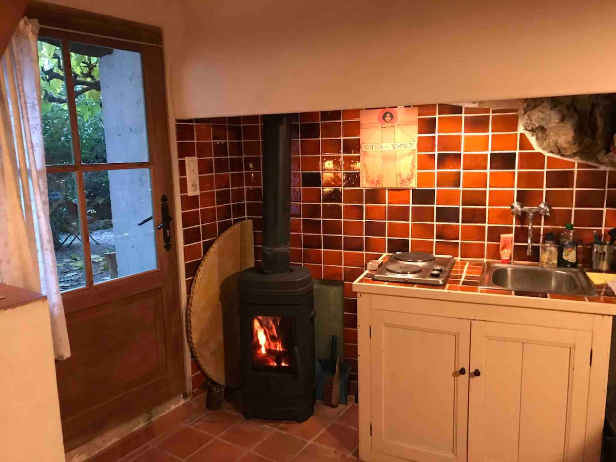 Más Hobbit que Batman (sin estacionamiento), esta pequeña casa cueva está construida en el acantilado de piedra caliza sobre el hermoso pueblo provenzal de Cotignac. Una de las propiedades más encantadoras de la zona, cuenta con un jardín con rosas, palmeras, cactus y adelfas. Vista panorámica del pueblo. Aparcamiento cercano, pero la propiedad no tiene acceso para vehículos, solo un camino estrecho y empinado. Este es el estudio de pintura del propietario, caballete disponible. Búhos reales anidan arriba, no se permiten fiestas ni música alta. Se requiere buena forma física.