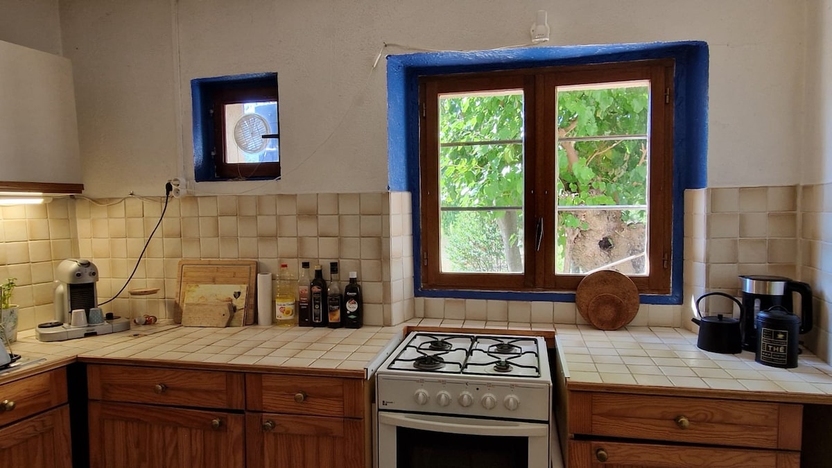 Cabaña de piedra seca, totalmente renovada con un estilo depurado, típicamente provenzal. En la propiedad, independencia asegurada. cama fija colchón BULTEX NANO Se proporciona ropa de cama Ducha italiana Horno multifunción (tradicional, grill, microondas) Placa de gas de dos fuegos Cafetera Tostadora Frigorífico/congelador 45 l Wifi Altavoz BT Estufa de leña Godin Barbacoa exterior Tumbona (2) Aparcamiento en la propiedad