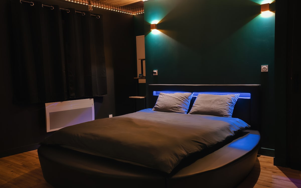 Disfrute de un paréntesis atemporal en El Paraíso, una suite romántica premium con impresionantes vistas al Allier. • Bañera de hidromasaje y ducha doble • Aire acondicionado • Terraza privada, espacio exterior y parrilla • 2 camas grandes (dos camas de dos plazas) • Cocina totalmente equipada + bodega de vinos • Sillón tántrico y columpio (bajo petición) • Servicios personalizados disponibles Perfecto para una estadía romántica, una noche de lujo o un momento de descanso inolvidable.