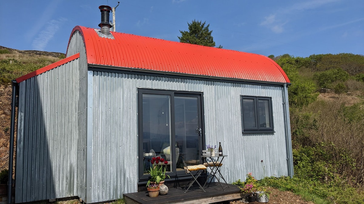 Welcome to Naust ( Norse for a small building by the sea) , where the main event is the spectacular uninterrupted sea view over the Sound of Mull, closely followed by the beautiful, bespoke tiny house, hand-built by a local craftsman with stylish interior and superb quality fixtures and fittings. You'll find everything at Naust that you need to make this your perfect escape, from a fully equipped kitchen, wireless speaker & radio, picnic basket, superking bed, fluffy towels and a huge shower !