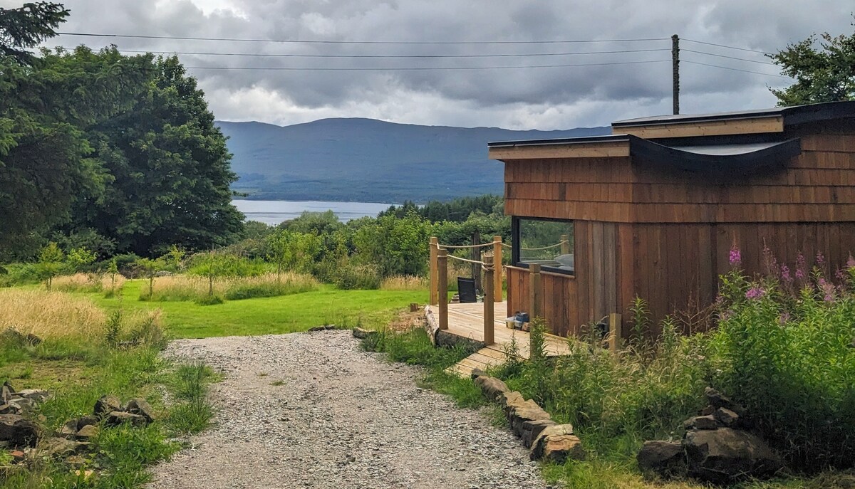 This unique place has a style all of its own. set on the top of a hill with stunning views over the sound of Sleat, taking in breathtaking views of the Isles of Eigg and Rum and in the distant the most westerly point of Scotland. Either sit and relax outside on the decking or down at the fire pit enjoying the peace and tranquility. Enjoy your relaxing break and cosy up inside with under floor heating through out and a warming glow from the log fire.