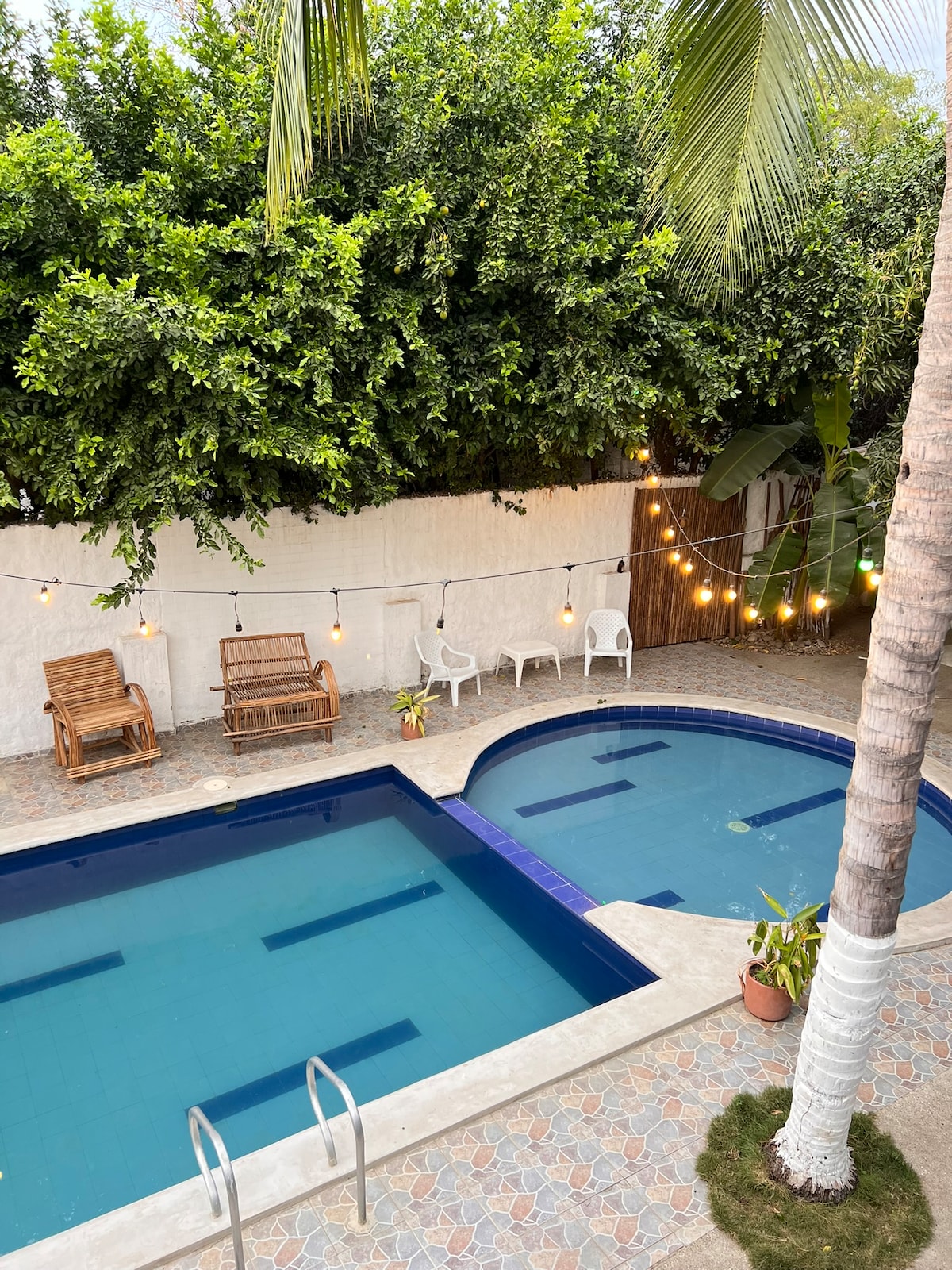 A 200 metros de la playa de Palomino, la casa 100% conectada a la naturaleza le ofrece un lugar tranquilo, en medio de cocoteros y mangos. La calle es la más tranquila del pueblo. La casa tiene 3 dormitorios en total, cada uno con su baño La bonita piscina verde esmeralda ofrece momentos de descanso notables. La terraza de 100 m2 en el primer piso es el lugar privilegiado para practicar deporte o yoga (La planta tiene 2 literas con capacidad para 4 personas más) Bienvenido