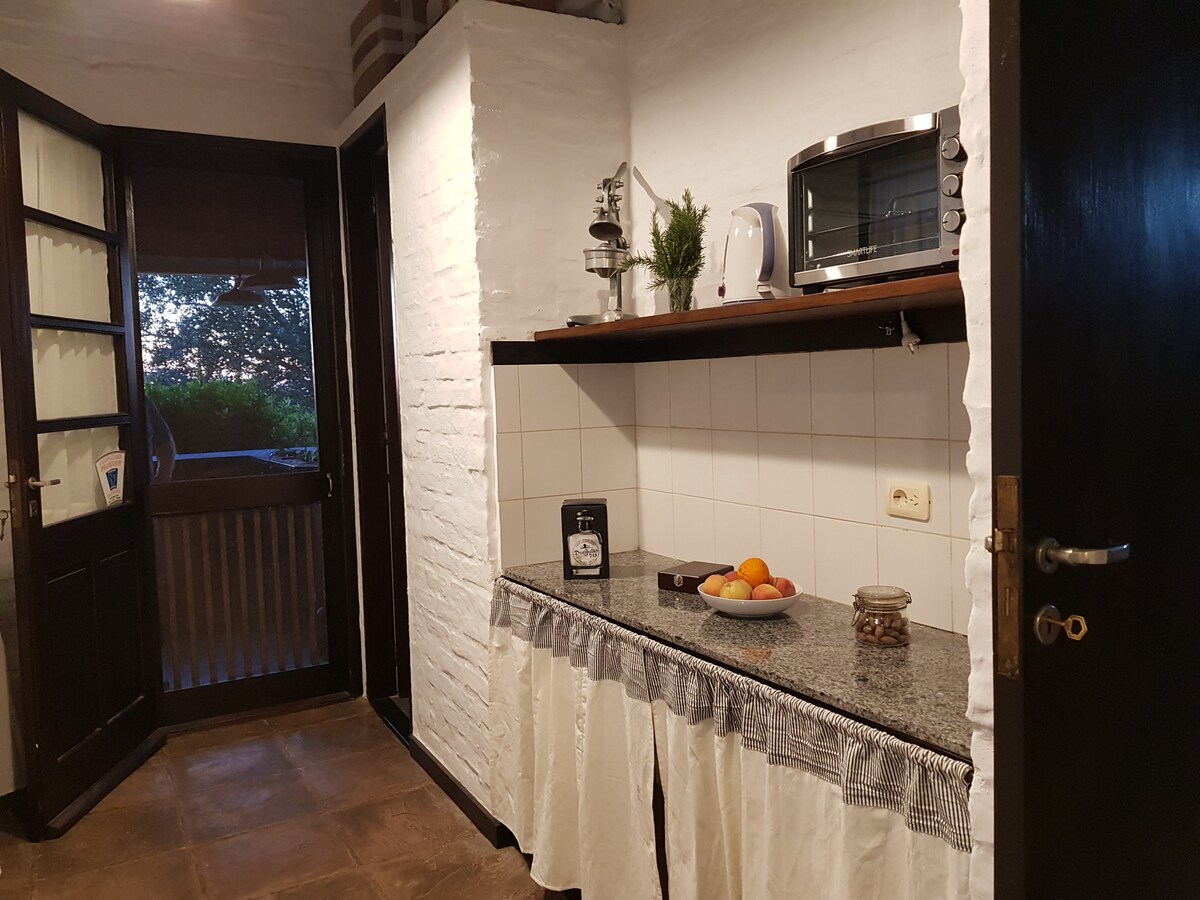 Monoambiente para dos personas con entrada independiente dentro de la Chacra "Los Chorrillos", ubicado en zona de viñedos y plantaciones de limones a cuatro kilómetros de la Plaza de Toros en la Colonia del Sacramento, con vista al Río de La Plata y a seiscientos metros de la playa "La Arenisca". Parrilla cubierta, piscina, bicicletas, caballo, bosque, arroyo, horno de barro, huerta orgánica, gallinero, frutales, atardeceres mirando el sol que se sumerge en el río, silencio, paz.