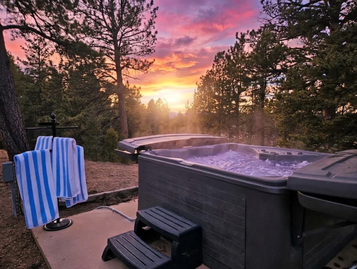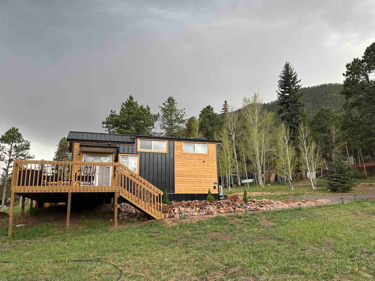 Esta hermosa minicasa es ecológica y está ubicada en las majestuosas Montañas Rocosas; ubicada a 10-20 minutos de Manitou Springs, CO Springs, Woodland Park y a 5 minutos en auto de Pikes Peak. ¡Echa un vistazo a las excursiones de un día a Monarch, Buena Vista, Salida y Breckenridge para disfrutar de la abundante diversión invernal! ¡Esquía, monta motos de nieve, deslízate en un tubo de nieve, sumérgete en aguas termales y mucho más! Disfruta de tu jacuzzi privado después de un día activo. ¡No olvidarás tu estancia en este lugar romántico e inolvidable! ¡Se aplican descuentos de último minuto y por reservación anticipada!