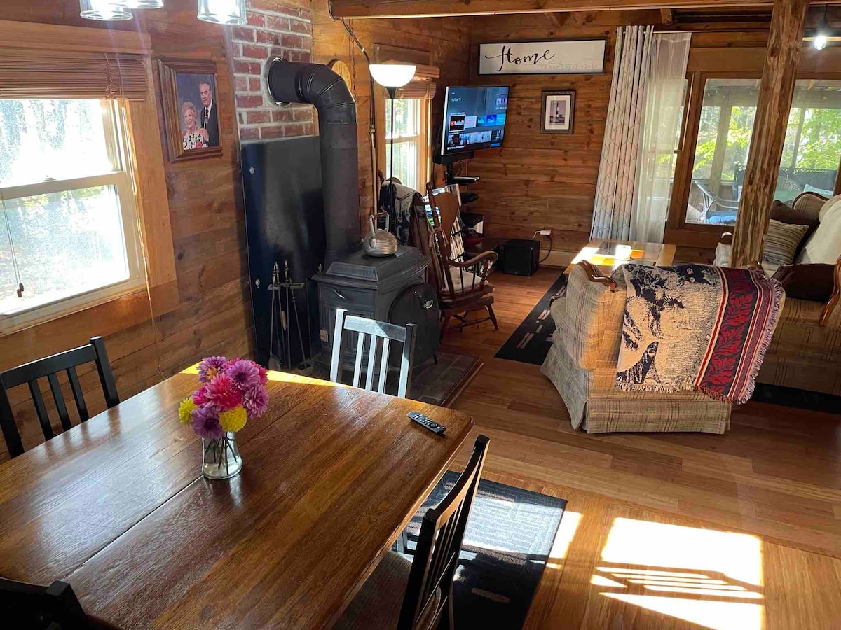 Your total getaway from the city and/or hectic life. We offer a very private and personal space for you to unwind and relax Everything on the property is handmade/built by owners. The grounds are very private. There is an abundance of wildlife and 50+ acres of private grounds to explore. Both owners are artists and world travelers. This stay is casual, relaxing and a real get away from it all. Hosts just down the lane for any assistance. Please book accurately # of people and # of pets.