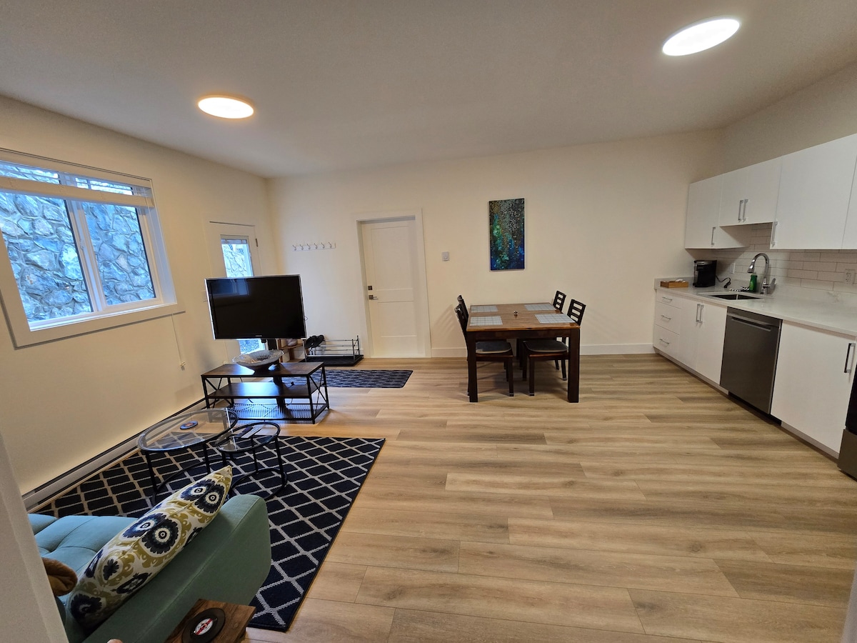 ¡Acogedora y renovada suite pequeña de 2 dormitorios en Colwood! Este luminoso espacio en el sótano ofrece una entrada privada desde el patio trasero, cocina completa, lavandería en suite y estacionamiento gratuito. Descansa tranquilo en camas tamaño king y queen premium, y disfruta de una sala de estar con TV de streaming. Sal a un patio trasero tranquilo con un toldo cubierto, parrilla para barbacoa y área de patio con fogata. Camina hasta la pintoresca laguna, el castillo de Hatley y la Universidad Royal Roads. Perfecto para familias, parejas o trabajadores remotos que buscan comodidad, naturaleza y conveniencia.