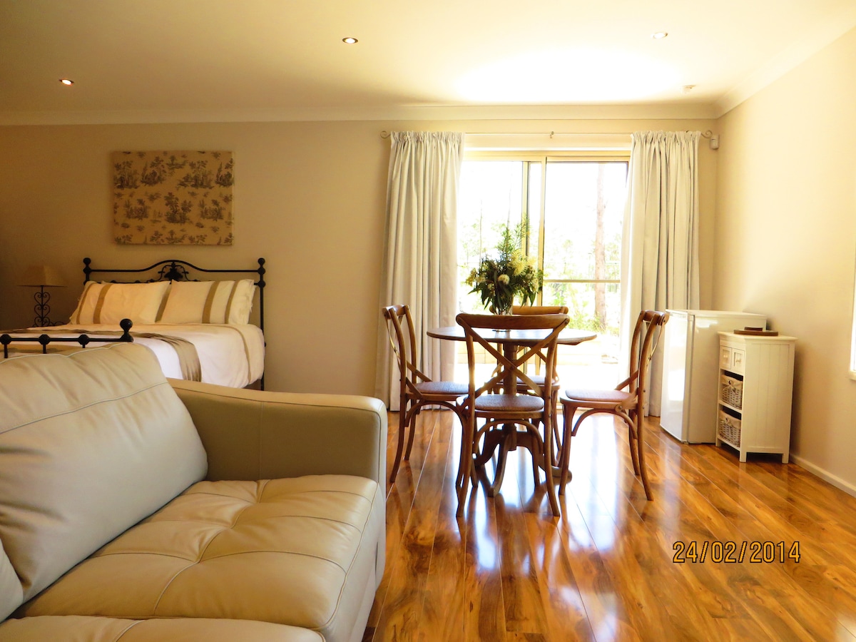Queremos darte la bienvenida al estudio de Oksana, que es un espacio recientemente renovado con muebles y accesorios modernos. Se abre a una gran sala de estar privada al aire libre donde puedes relajarte disfrutando de la vista rural mientras haces una barbacoa o te sientas junto al fuego después de explorar las playas locales y los parques nacionales. La propiedad está situada en un paisaje tranquilo y rural con matorrales y vida silvestre para explorar. Todo a poca distancia en coche de Jervis Bay y sus alrededores.
