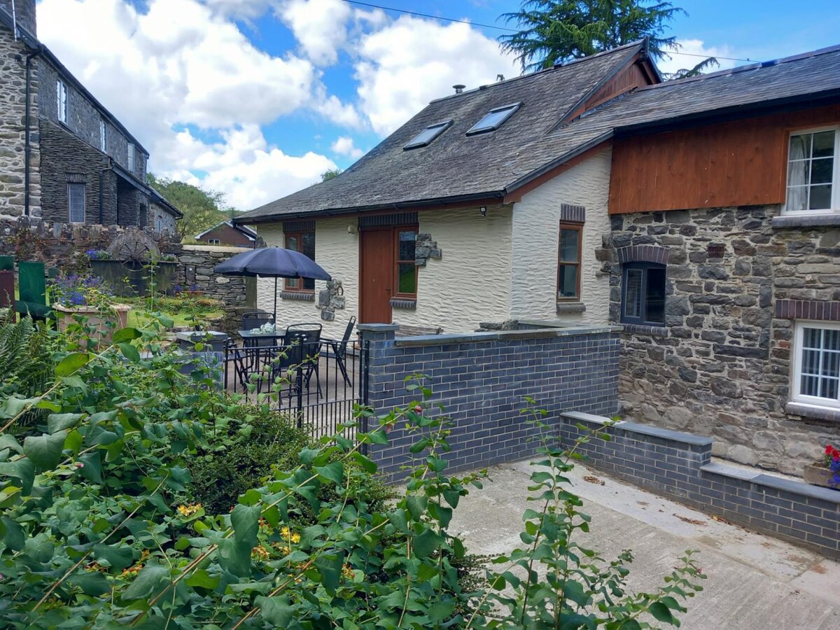 Una encantadora casa de campo antigua renovada con chimenea de inglenook, estufa de leña y entresuelo. Está bien equipado para tu estancia, ya que he intentado que sea un hogar para ti con muchos libros y plantas de interior. Siempre habrá algunas golosinas de bienvenida y puedes dormir en cómodas camas hechas con sábanas de algodón 100% u algodón orgánico y edredones de plumas y plumas. La cabaña está situada en el bonito valle arbolado de Dulas, cerca de la histórica ciudad de Machynlleth, cerca de Snowdonia y el mar.