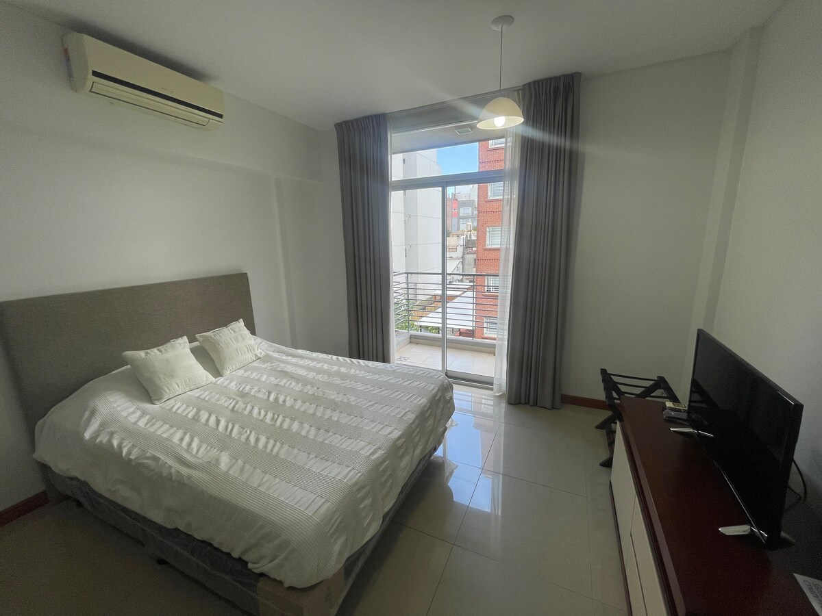 Estudio amplio y luminoso de gran categoría ubicado en el centro geográfico de la ciudad. Bello y moderno edificio, con múltiples comodidades para disfrutar de una gran estadía: cuenta con piscina, gimnasio, sauna, fogonero, wifi y seguridad 24 hs. El departamento cuenta con balcón al frente, cocina , baño con bañadera con hidromasaje, wifi, smart tv, aire split frío calor. Ubicado a 100 mts de Avenidas con múltiples líneas de colectivo y subte.