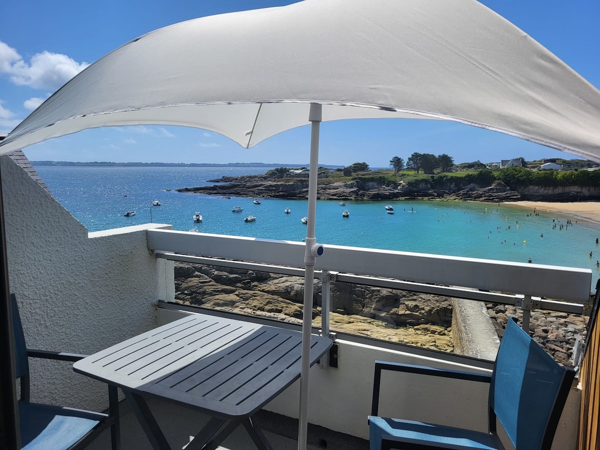 Estudio situado en el tercer piso con balcón que permite disfrutar de una vista panorámica excepcional de la entrada del puerto,el mar y la punta de Men Meur. Cómodamente instalado,asistirá en directo a la salida y llegada de los arrastreros y otros barcos. Con una ubicación ideal a 2 pasos del centro de la ciudad,donde encontrará todo lo que necesita y podrá disfrutar los martes y domingos de excelentes mercados de verano.Playa a 100 metros,bicicletas a su disposición para planificar agradables paseos.